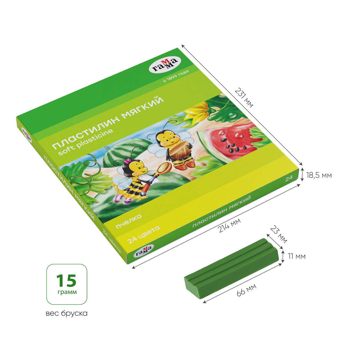 Пластилин для лепки Гамма "Пчелка" восковой мягкий детский, 24 цвета, со стеком / Набор для развития и творчества детей в школу и детский сад 355 ₽