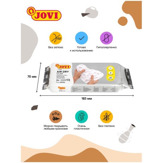 Паста для моделирования Jovi , отвердевающая, белый, 500г, вакуумный пакет информация:
