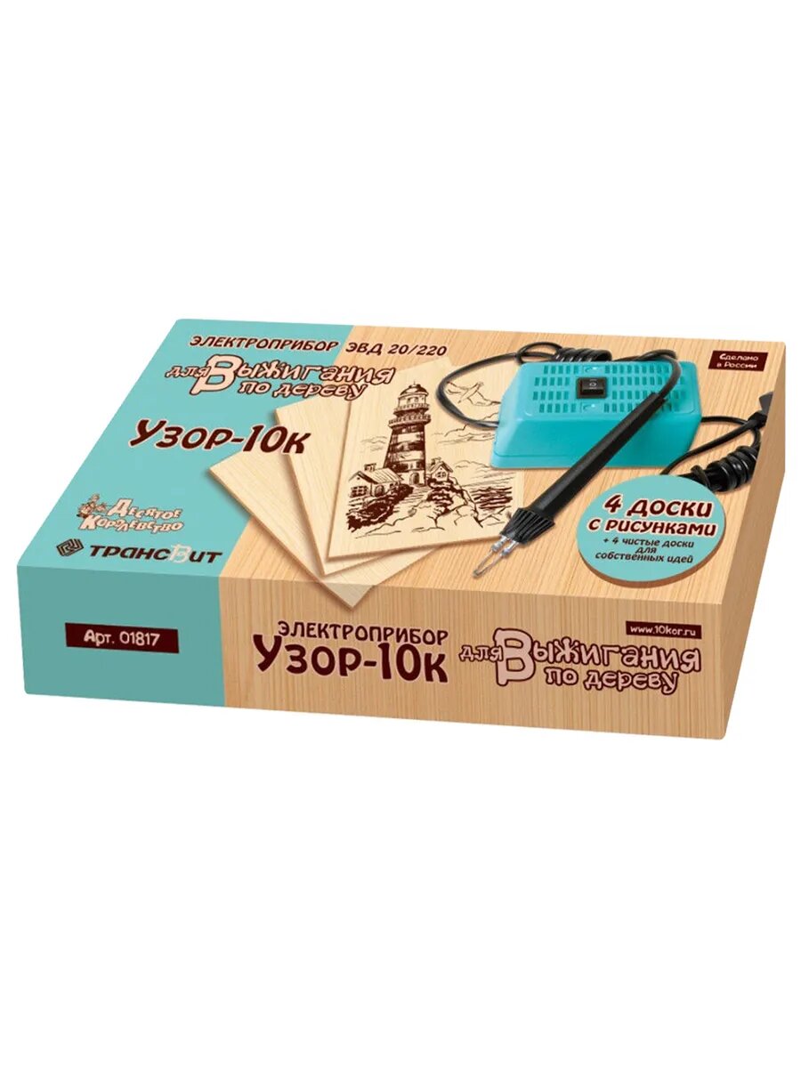 Электроприбор для выжигания по дереву "Узор-10К", набор для детского творчества, двухрежимный аппарат-выжигатель + 8 досок