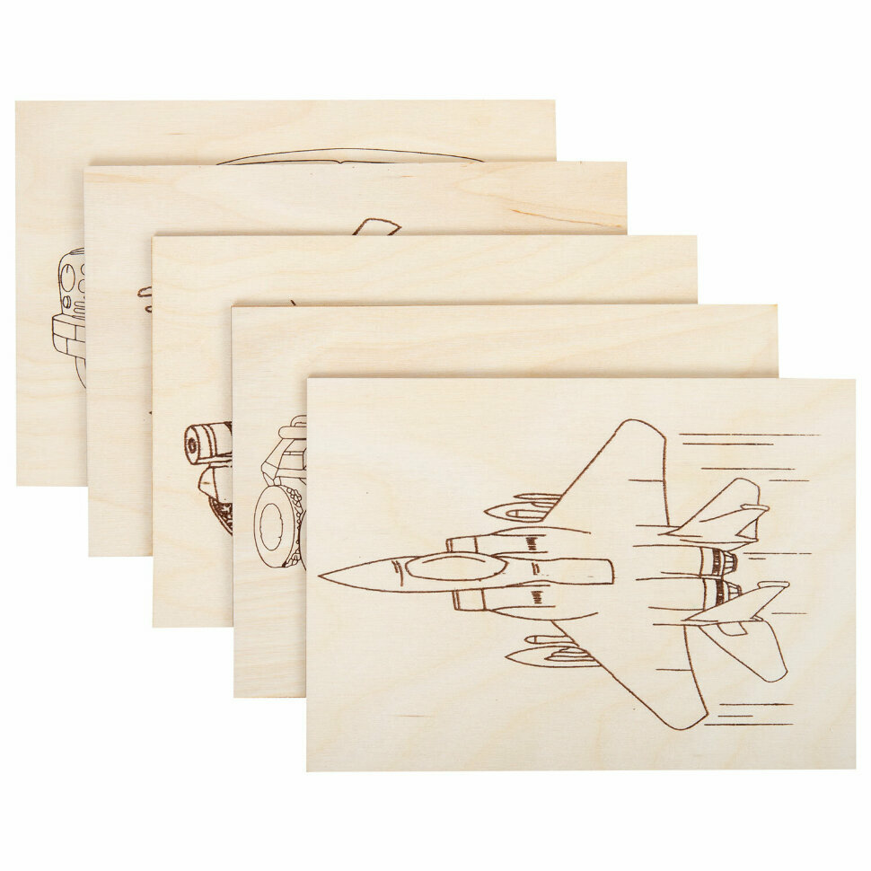 Заготовки деревянные для выжигания "Военная техника", 5 шт, 10 рисунков, 15х21 см, BRAUBERG HOBBY, 665308, 665308 информация: