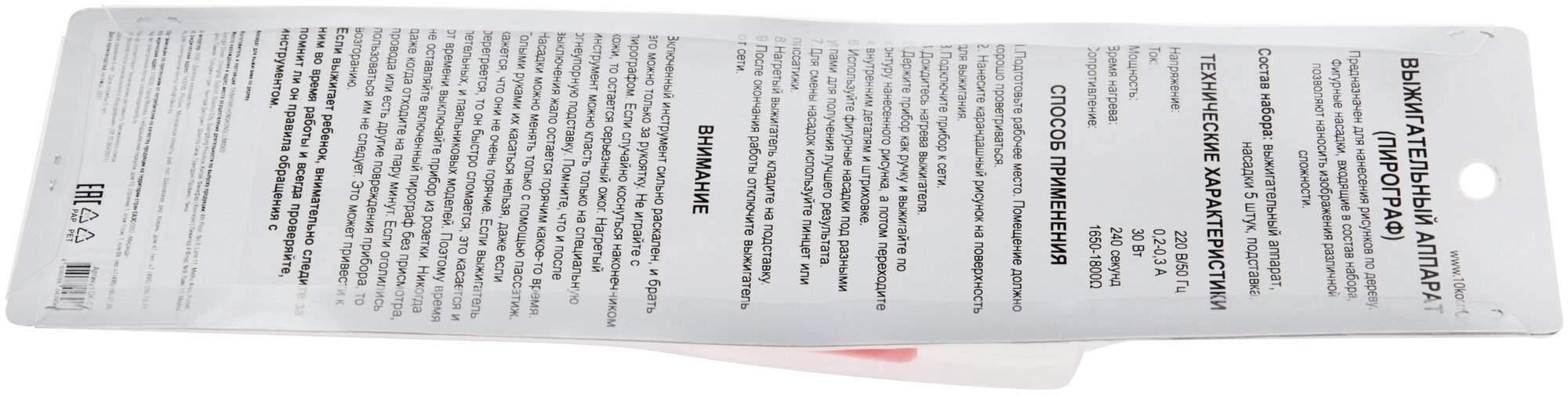| В комплекте | выжигательный аппарат, подставка, сменные насадки |