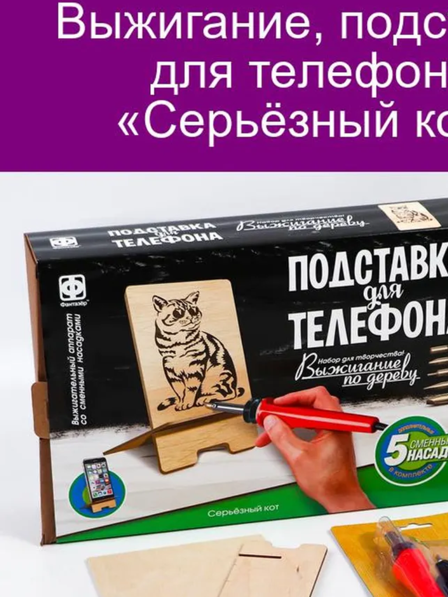 Творческий набор Фантазер Выжигание Подставка для телефона Серьезный кот 371405 информация: