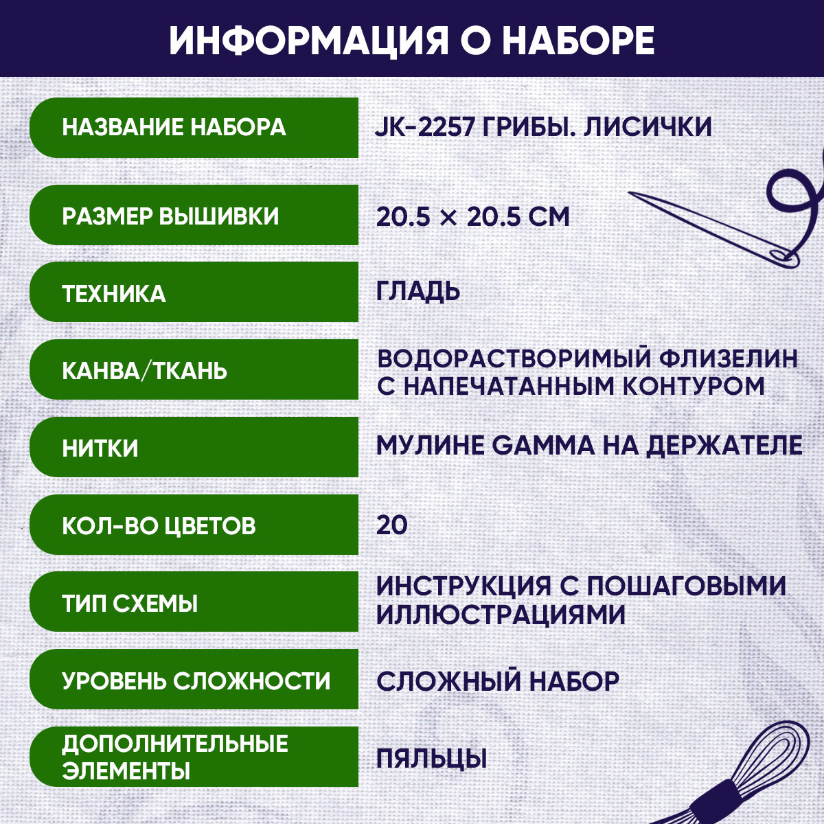 Набор для вышивания "PANNA"Живая картина" JK-2257 "Грибы. Лисички" информация: