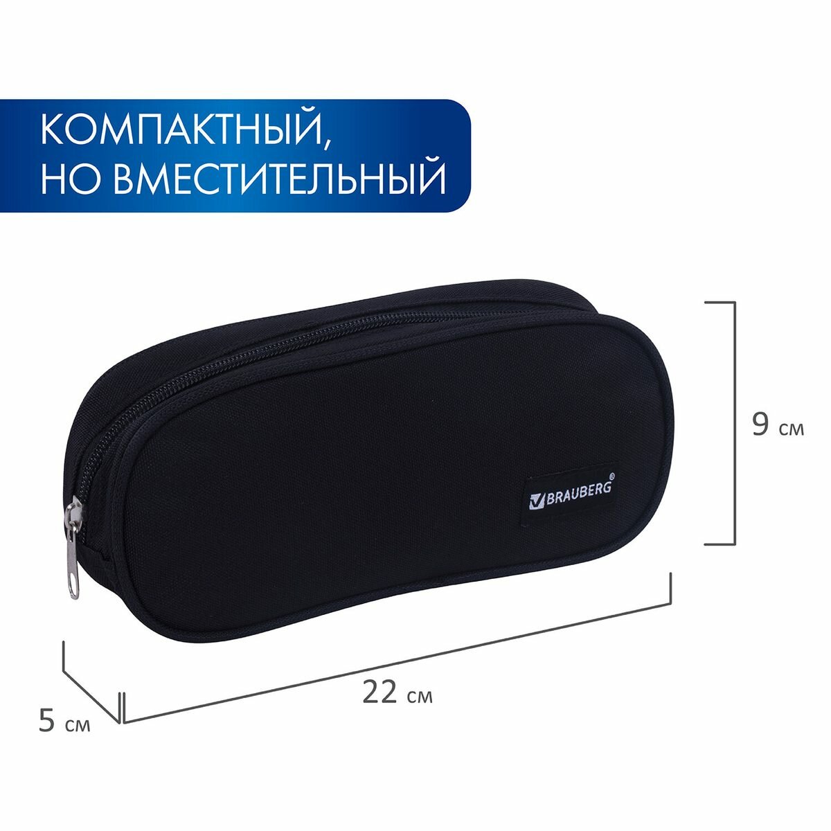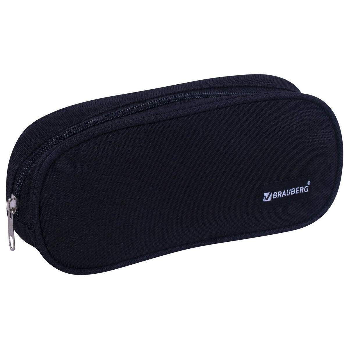 Пенал-косметичка Brauberg "Black", 22х9х5см, овальный, полиэстер (229271) информация: