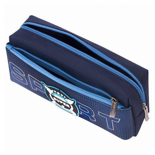 Пенал-косметичка школьный для ручек, карандашей Юнландия, 2 отделения, полиэстер, Sport Scorer, синий, 20х9х6 см, 271575