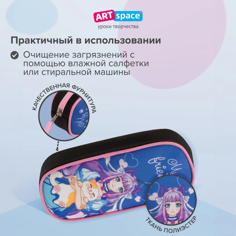 Пенал школьный ArtSpace серии My friend, полиэстер, 1 отделение, канцелярия для девочек, подростков, товары для школы, аниме информация: