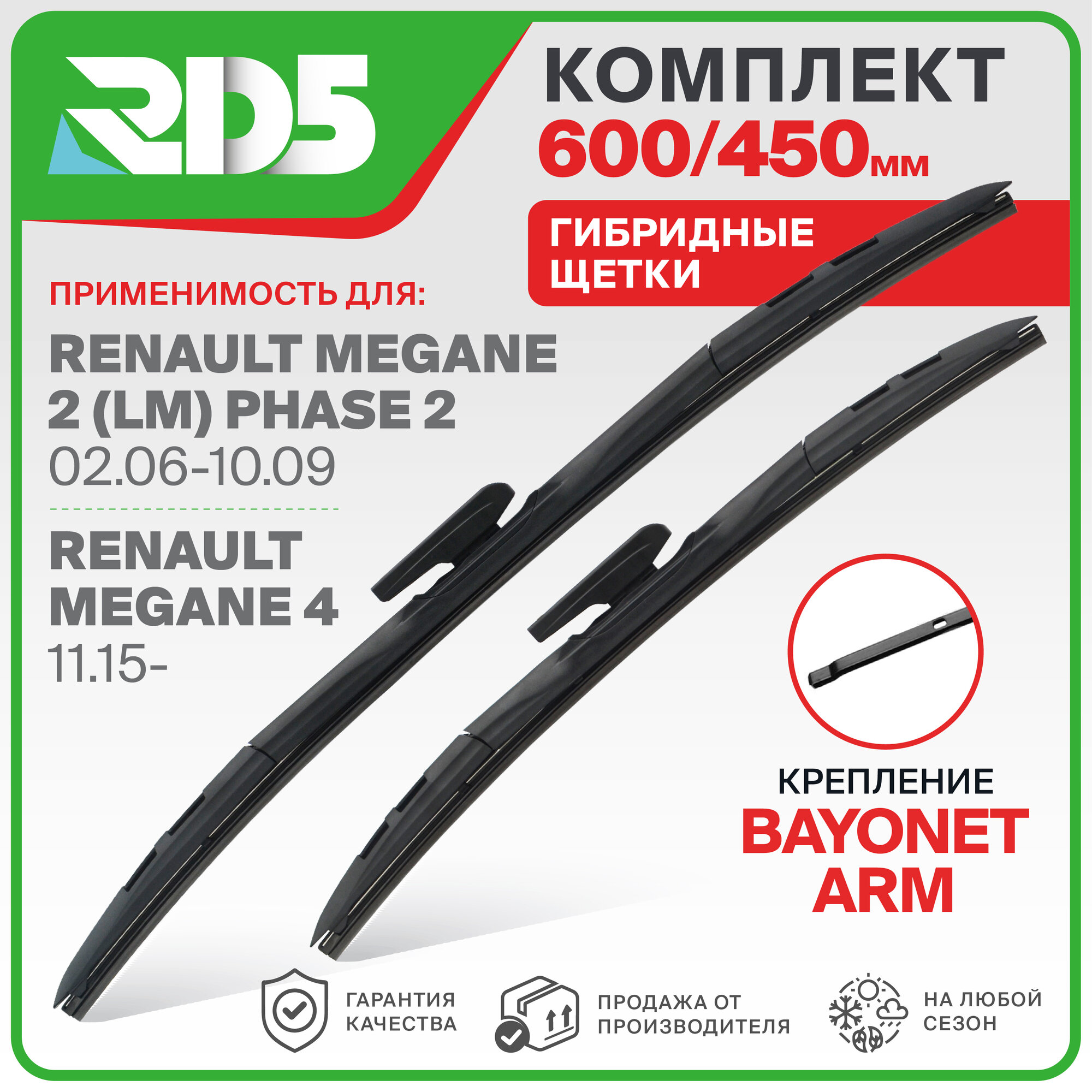Отзывы на 600 450 мм. Крепление Bayonet Arm. Комплект гибридных щеток стеклоочистителя RD5 дворники на Renault Megane 2 Phase 2; Рено Меган 2 Фаза 2; Renault Megane 4; Рено Меган 4