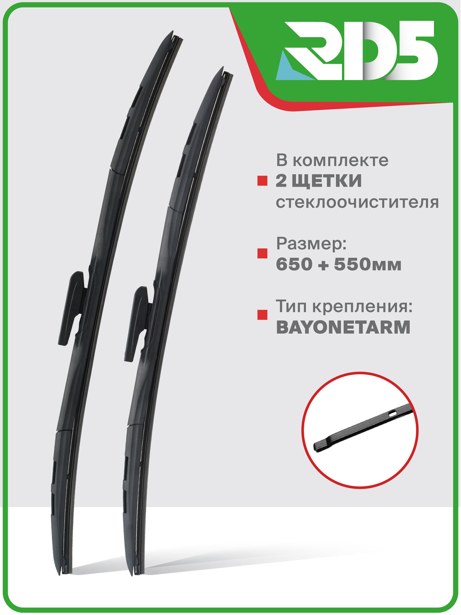 | Подробная комплектация | Комплект гибридных щеток стеклоочистителя RD5 650 500 мм. Крепление Bayonetarm |