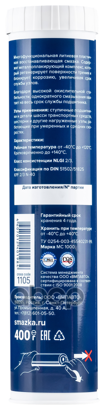 Смазка Мс-1000 Многоцелевая 400гр. Вмпавто 1105 ВМПАВТО арт. 1105 1 118 ₽