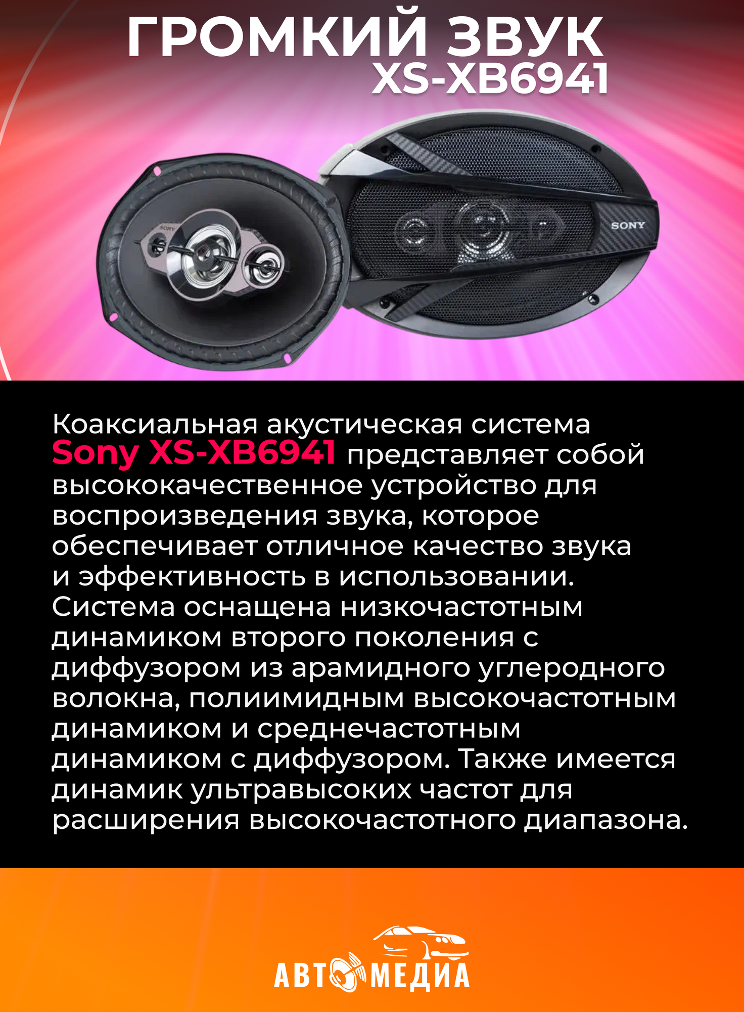Коаксиальная акустическая система Sony XS-XB6941 16x24см 2шт информация: