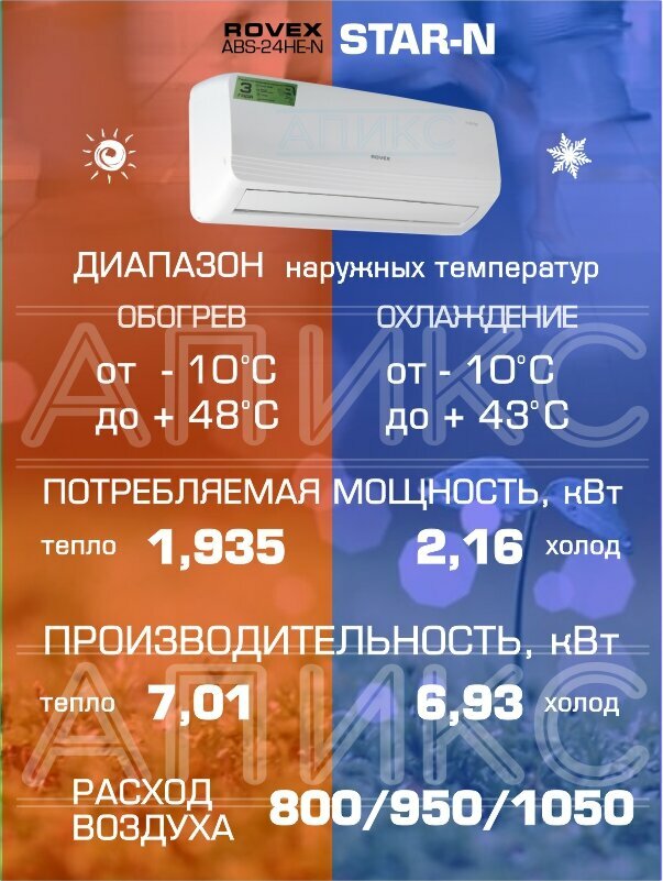 Сплит-система Rovex Star ABS-24HE N, инверторная, 24 BTU, до 72 кв. м, белый информация: