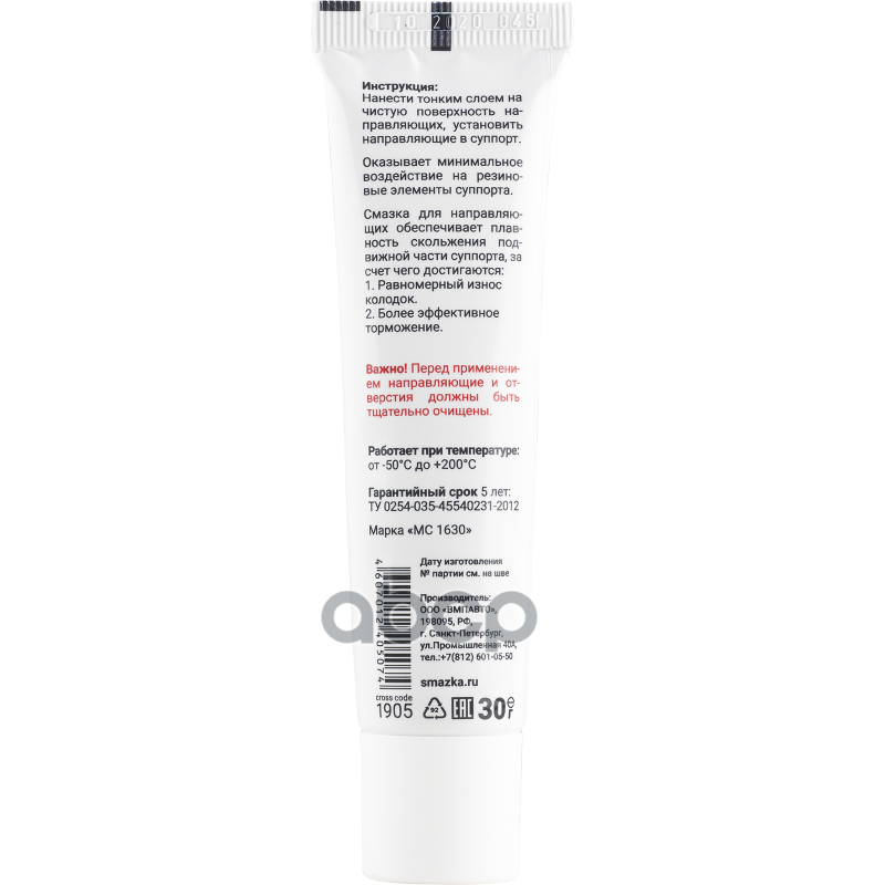 1905_смазка! Для Направляющих Суппорта Mc1630, Туба В Пакете, 30 Г ВМПАВТО арт. 1905 818 ₽