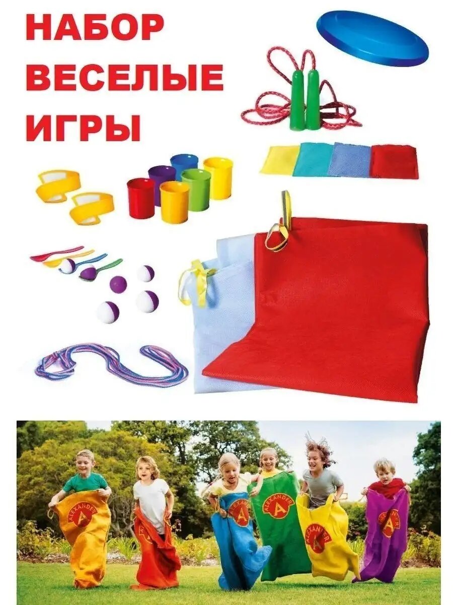 | В комплекте | спортивные мешки - 2 шт., ложки - 4 шт., мячи - 6 шт., чашки - 6 шт., мешки для баланса - 4 шт., резинки для спутывания ног - 2 шт., летающая тарелка - 1шт., резинка для прыжков - 1 шт., скакалка - 1 шт., руководство |
