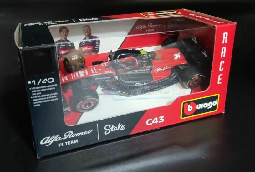 Металлическая коллекционная модель "Bburago" болида "Альфа-Ромео" Чжоу Гуаньюй. ("Alfa-Romeo" C43 №24) Формула-1 сезон 2023. Масштаб 1:43 информация: