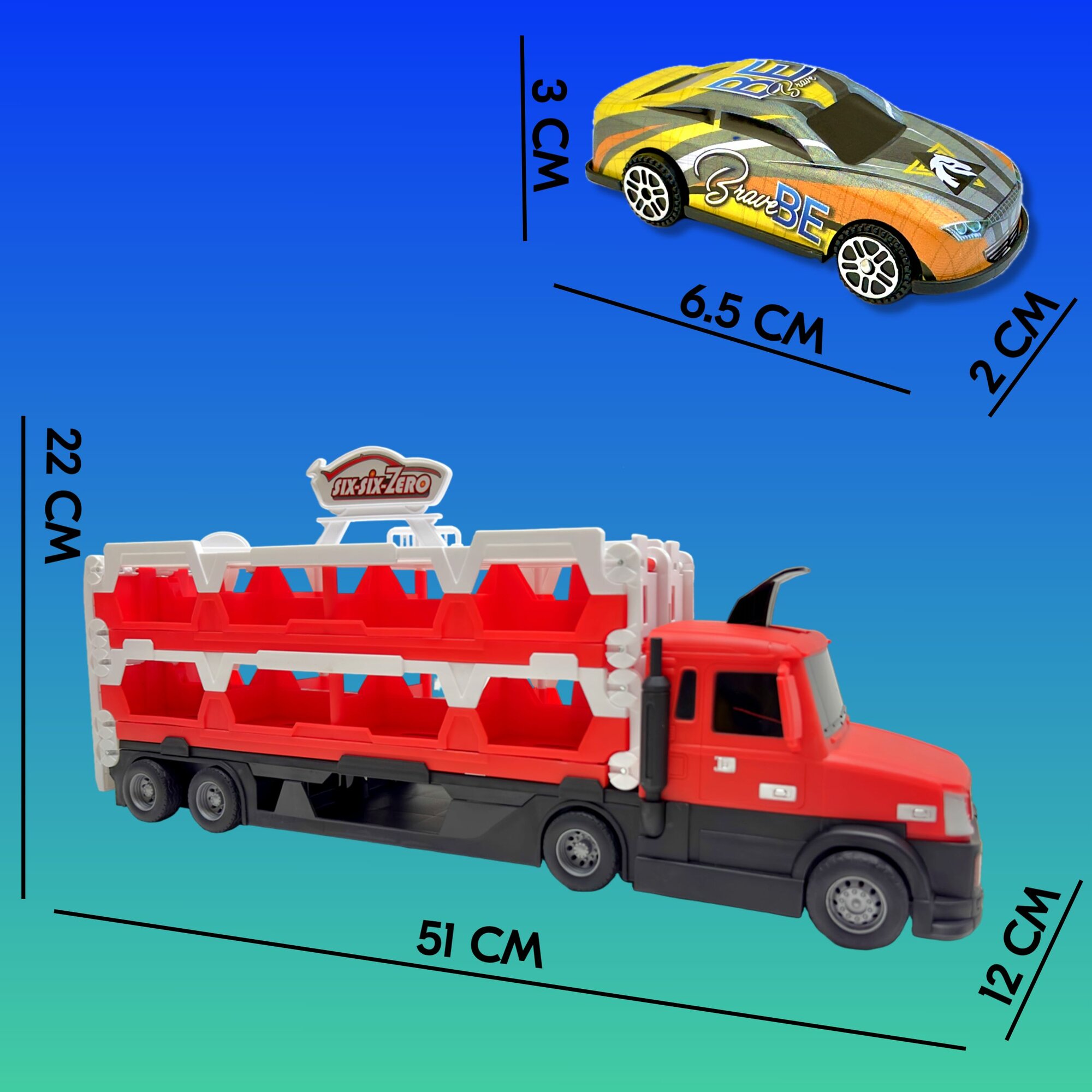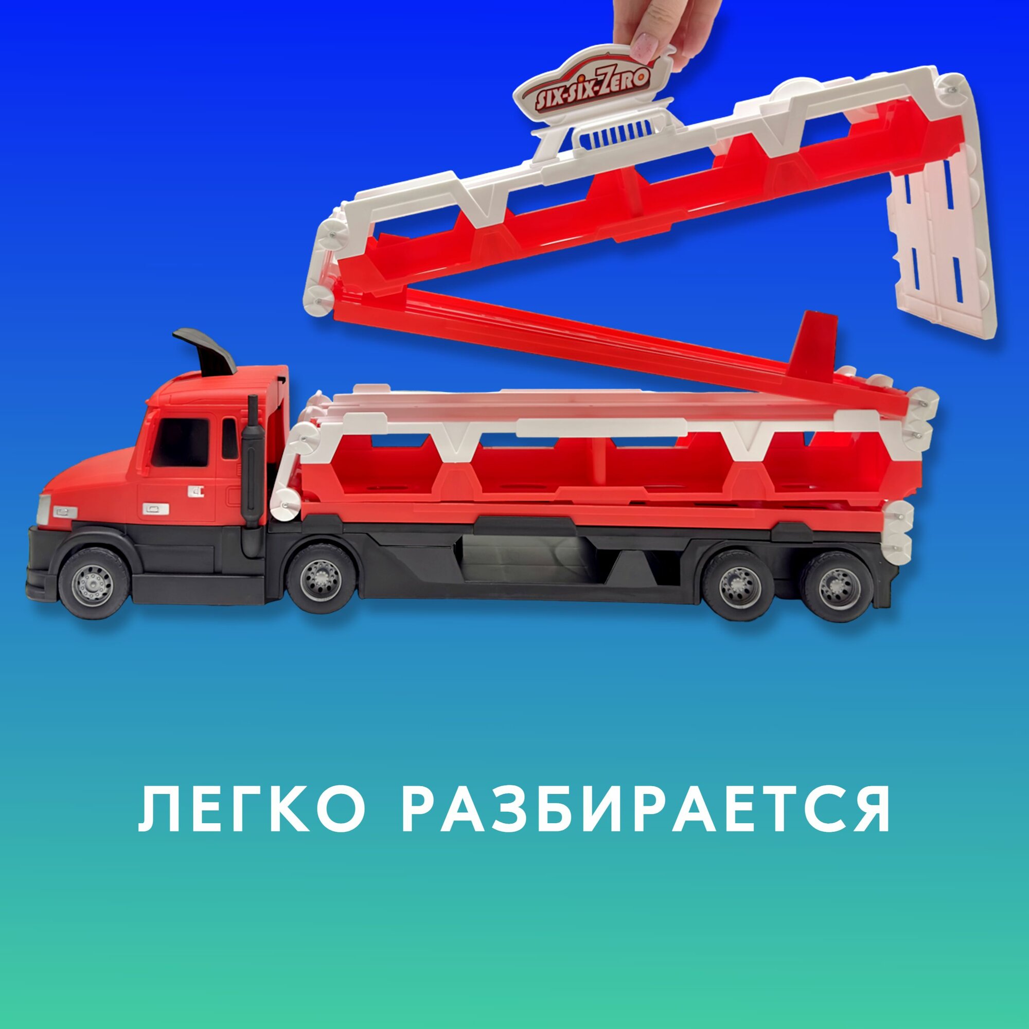 Автотрек трейлер с 6 металлическими машинками, Автовоз TRUCK игрушечный со звуком и светом + катапульта, трансформируется в большой гоночный трек 160 см 2 550 ₽