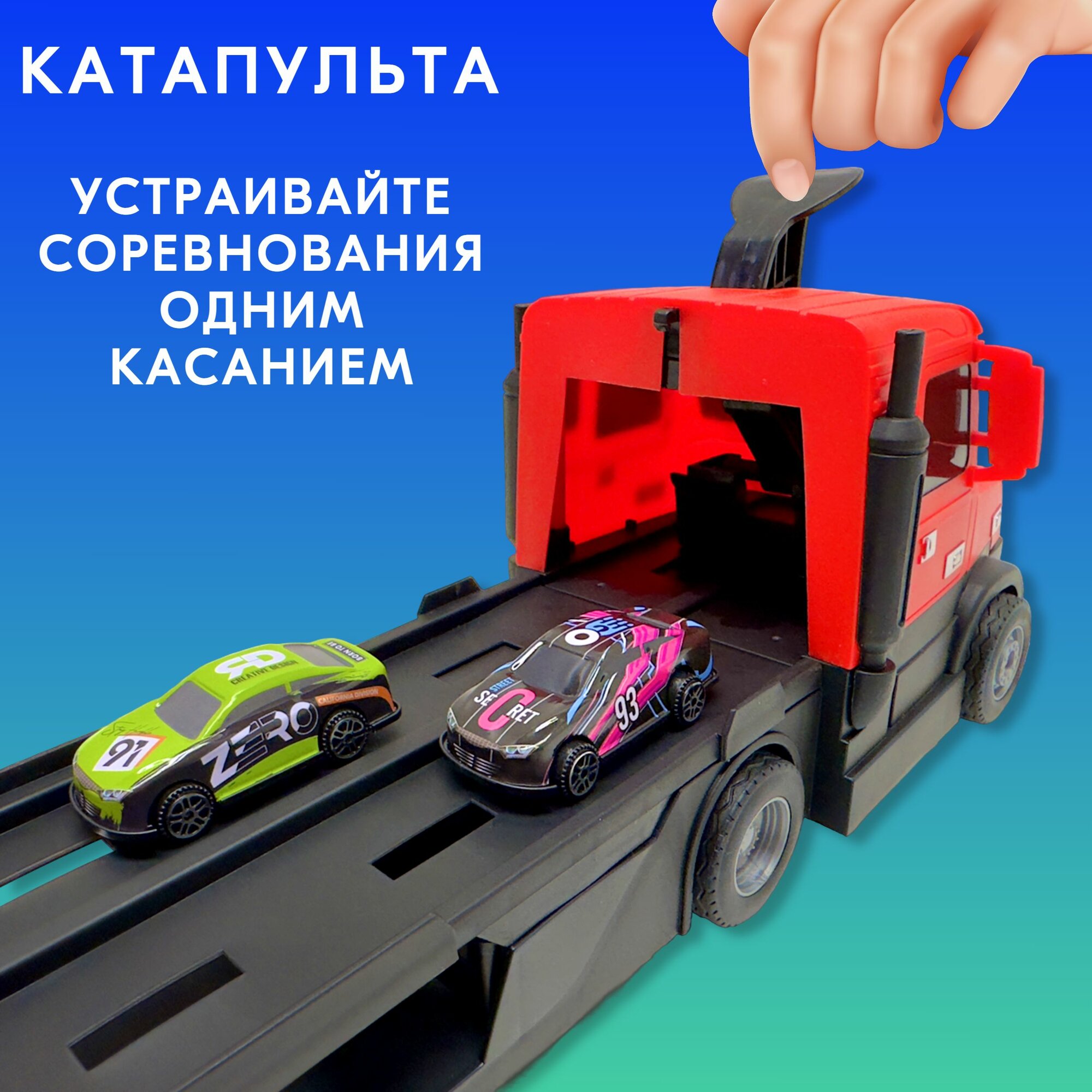 Автовоз с металлическими машинками и катапультой, автотрек со звуком и светом, 34х18х9 см 1 619 ₽