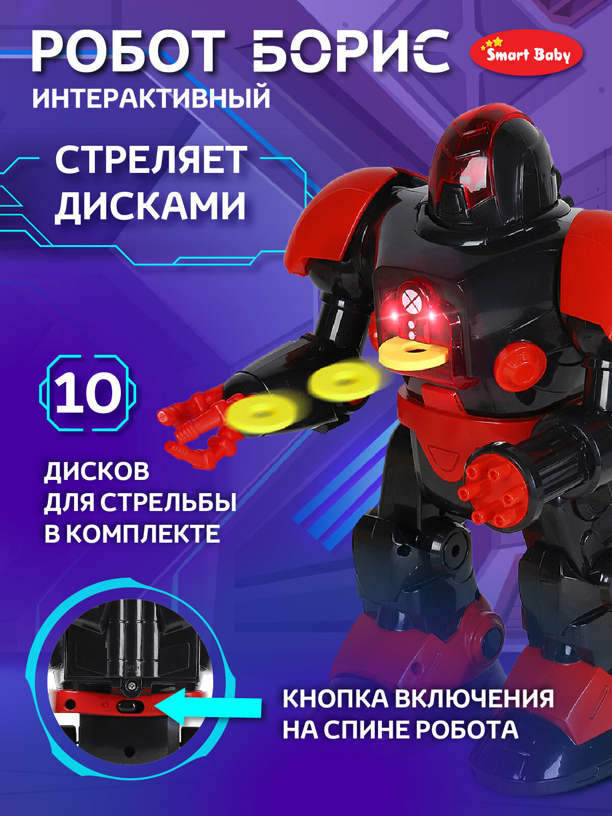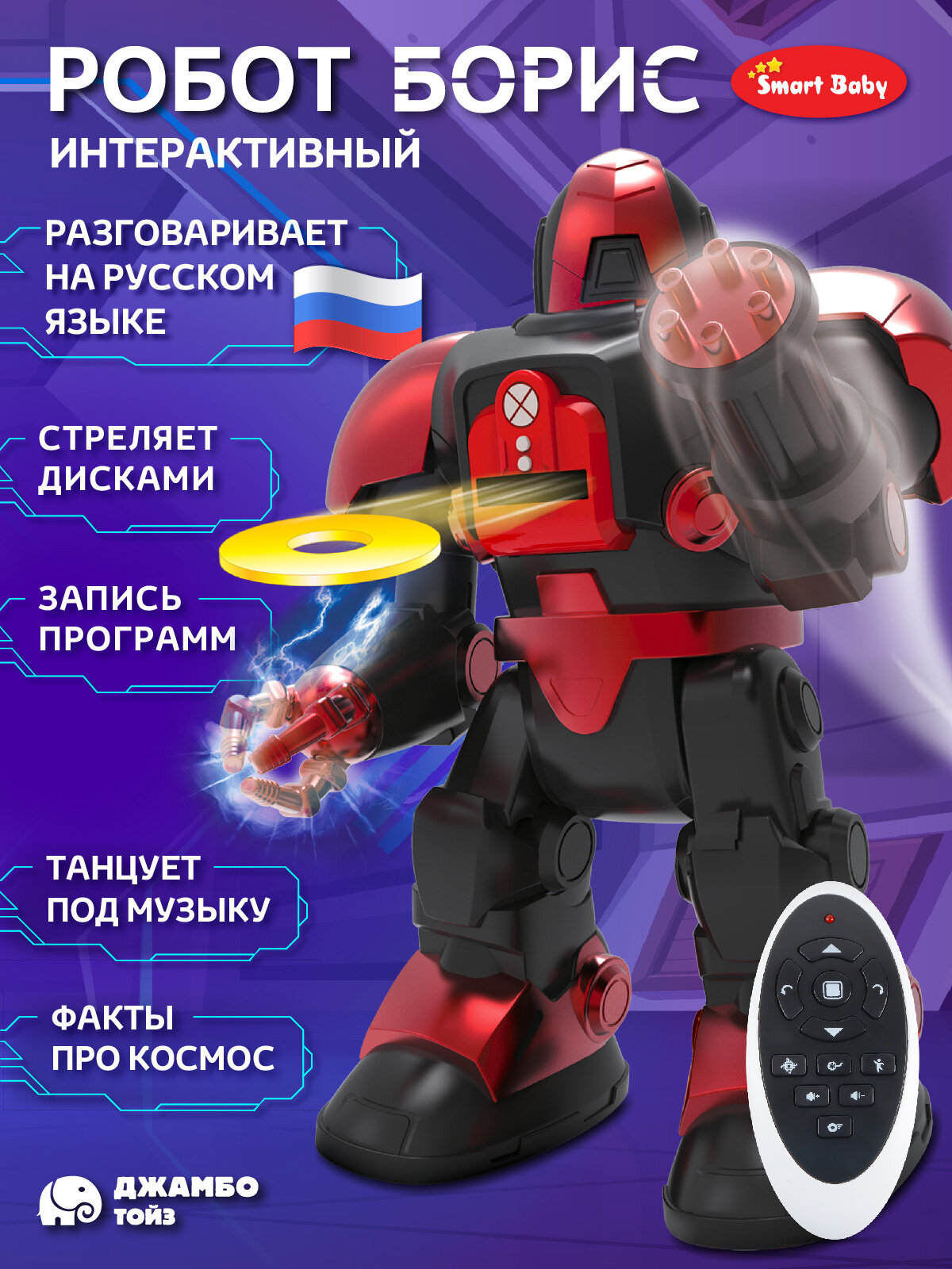 Отзывы на Интерактивный робот Борис, ходит, танцует, обучает интересным фактам о космосе, стреляет дисками, свет/звук, JB0213012