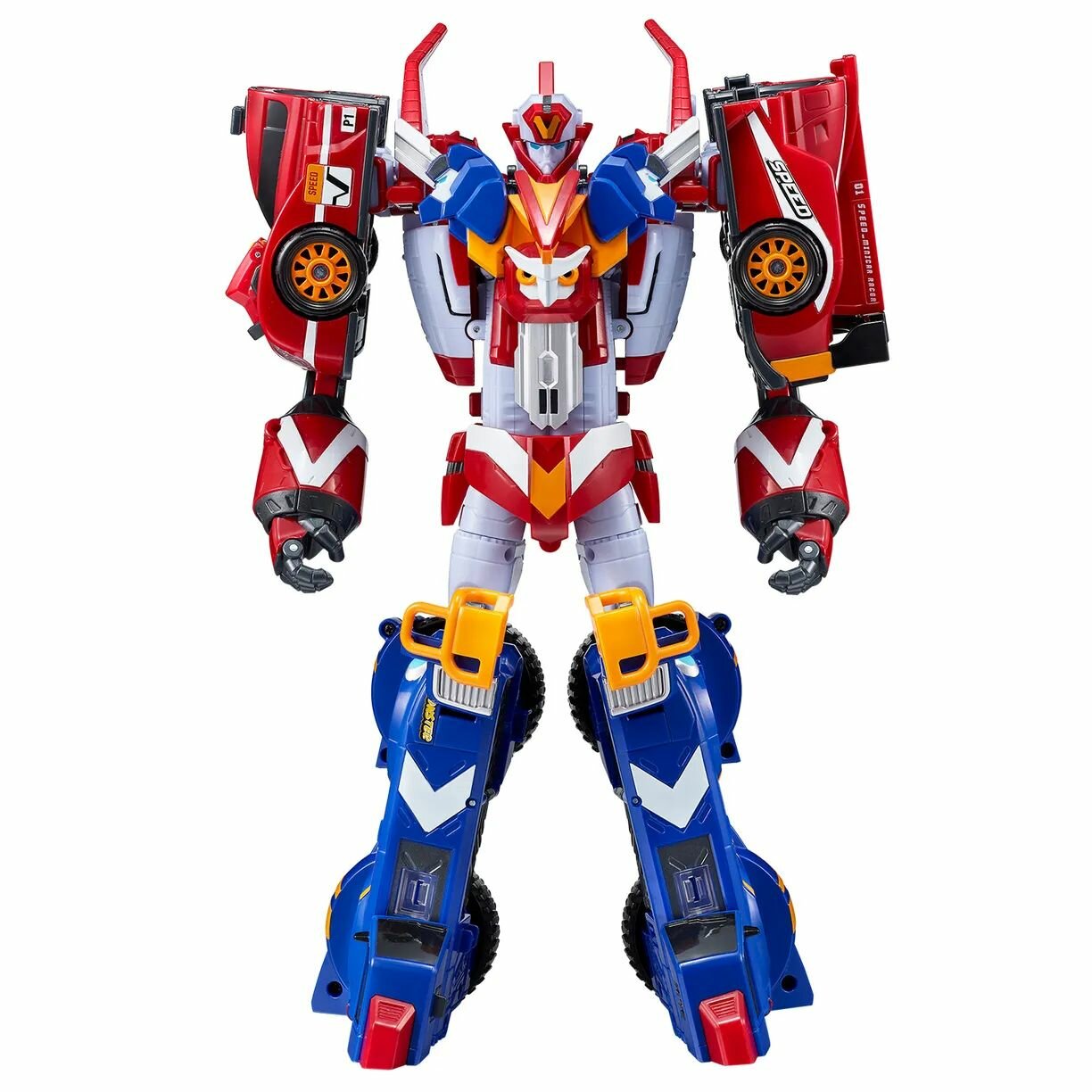 Дополнительная информация | состоит из 3 героев: Спиди, Монстр, Шаттл; при соединении с Тоботами: Мега Дрель (арт.301104), ПауэрТрейн (арт.301105) и КвантумСтэлс (арт.301106) образует супер-Тобота - Мастер Ви Алтимэйт; размер упаковки: 36см x 12см x 27см |