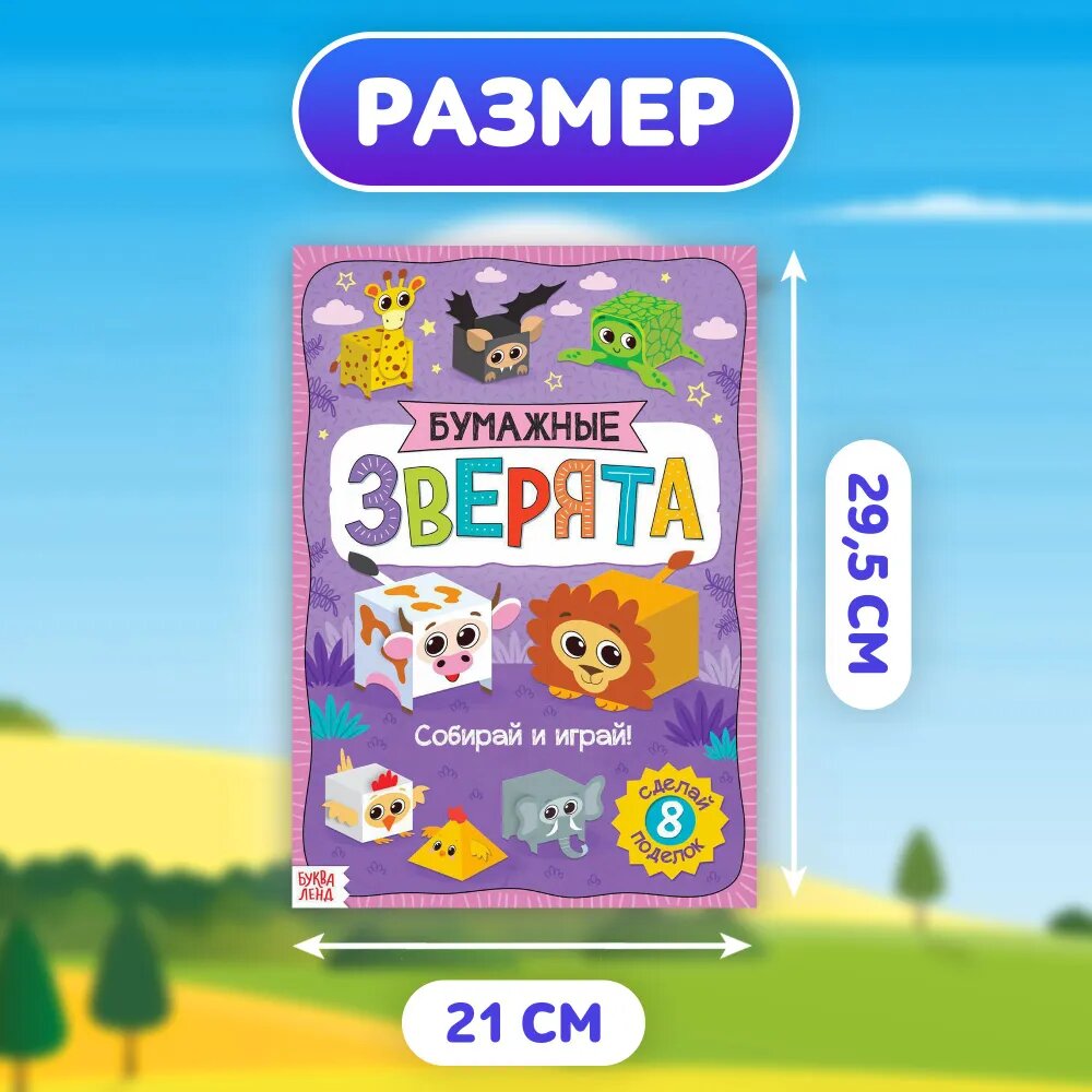 Книга с аппликациями "Бумажные зверята" 4 шт, 20 стр, формат А4, для детей и малышей информация:
