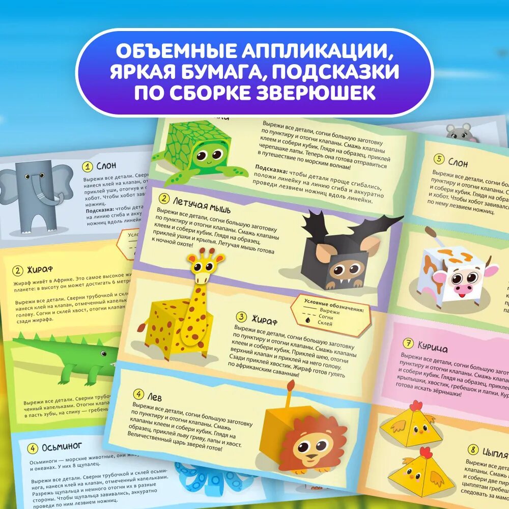 10 цен на Книга с аппликациями "Бумажные зверята" 4 шт, 20 стр, формат А4, для детей и малышей