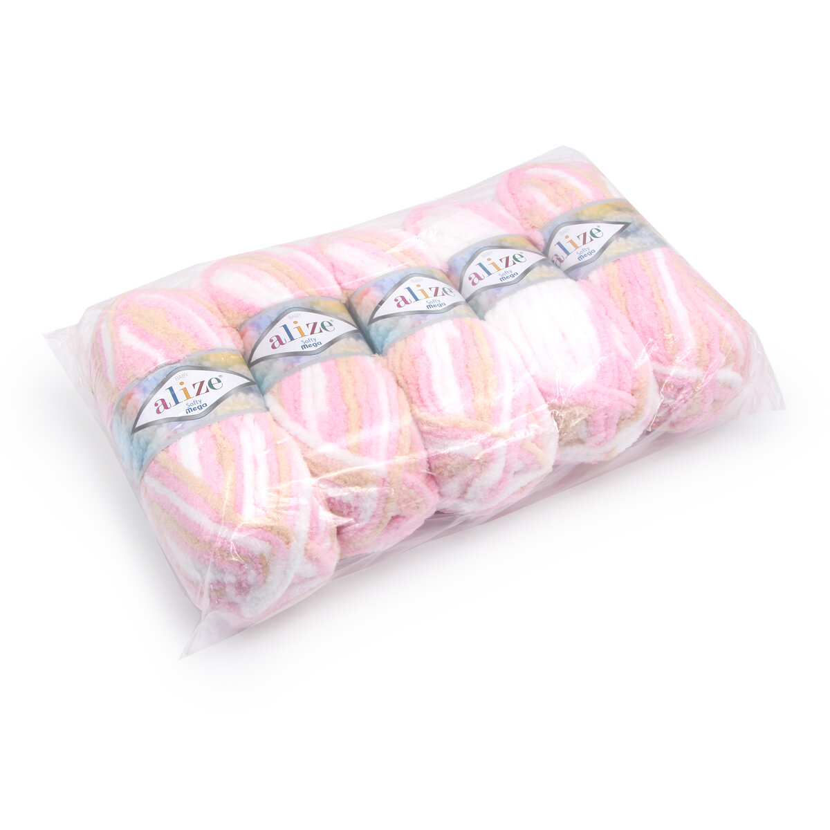10 цен на Пряжа Softy mega, Alize, принт - 6046, 100% микрополиэстер, 5 мотков, 100 г, 70 м.