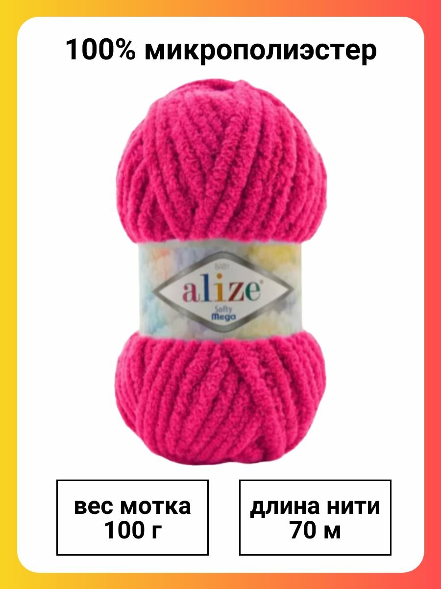 10 цен на Пряжа Alize Softy Mega 798 бугенвиллия, 100 г, 70 м, 5 штук