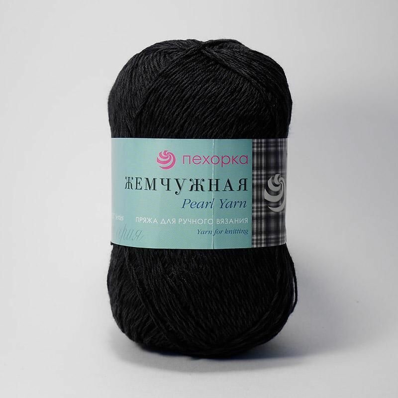 Пряжа Пехорка Жемчужная цвет 02 черный (100г/425м, упаковка 5 мотков) информация: