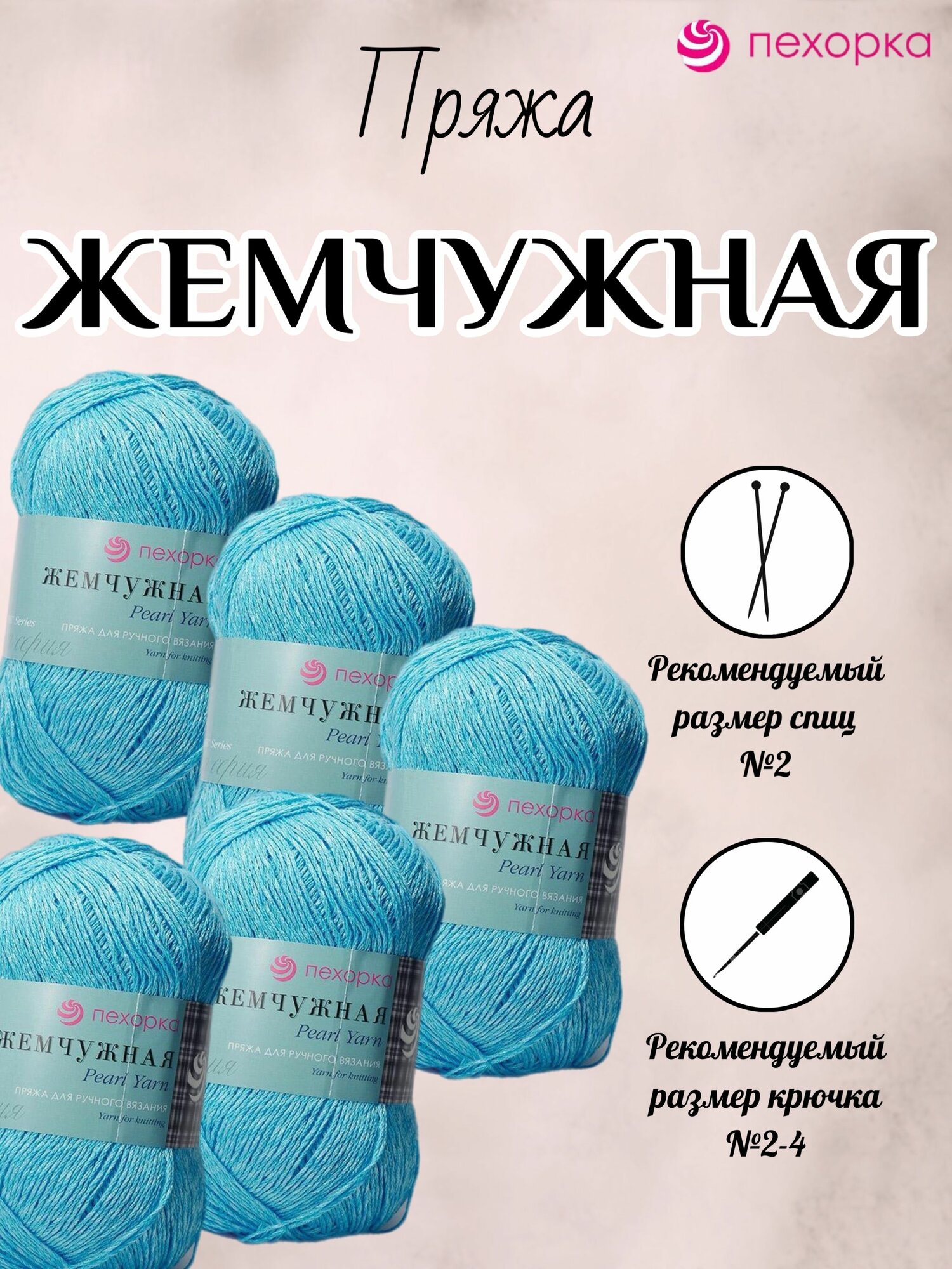 10 цен на Летняя хлопковая пряжа Жемчужная Пехорка, цвет 63 льдинка, 5 мотков