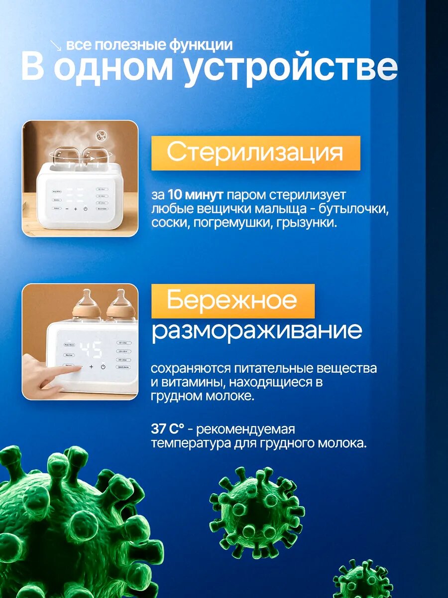 10 цен на Электрический подогреватель стерилизатор для детского питания на 2 бутылочки.