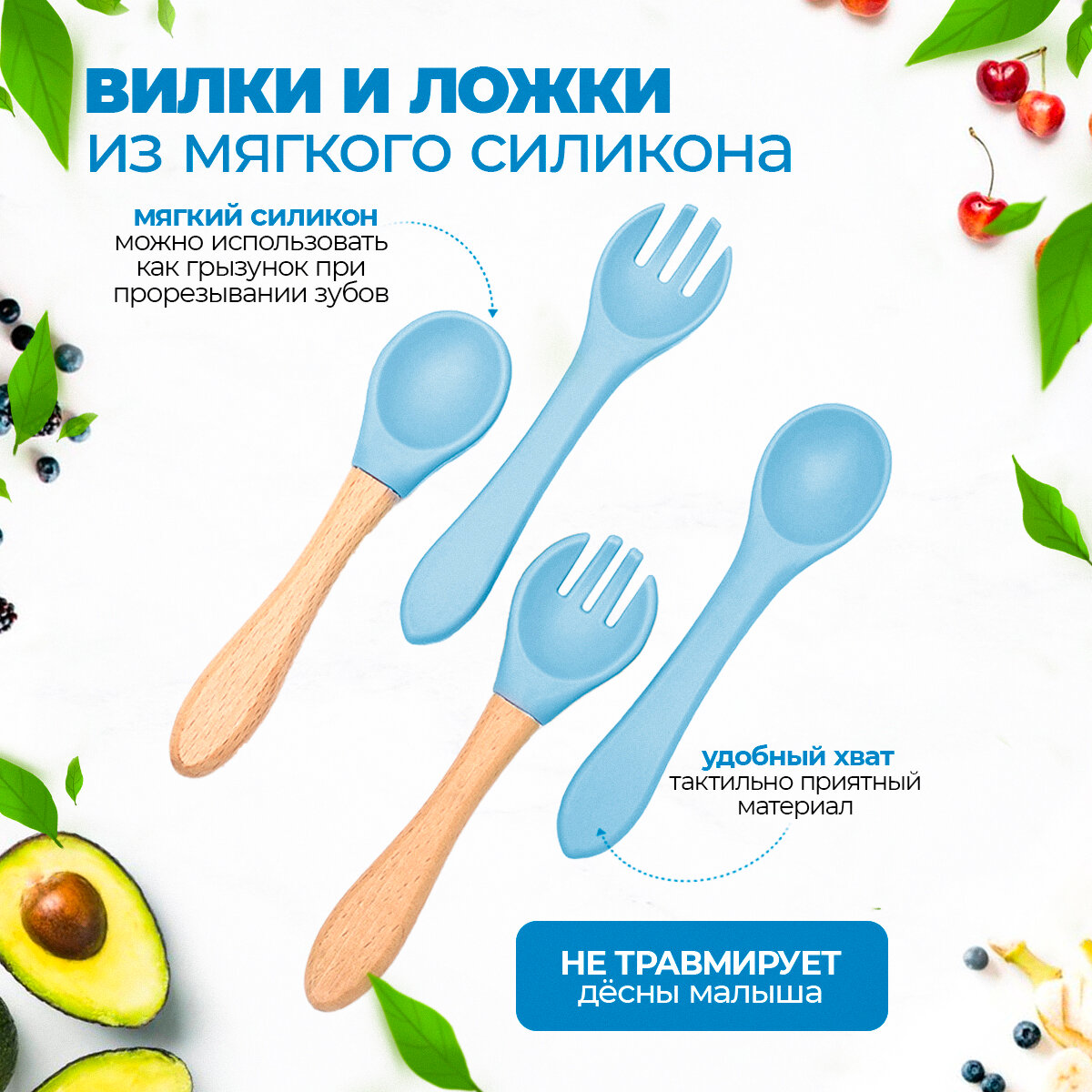Набор детской посуды силиконовый для кормления малыша на присосках, 9 предметов, белочка голубая, для мальчика 1 733 ₽