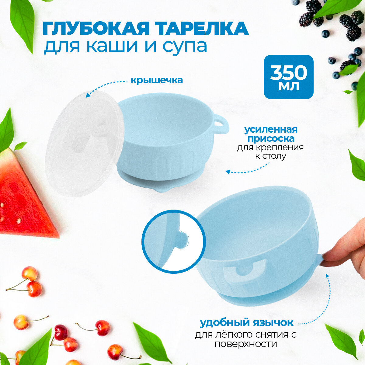 Максимальный силиконовый набор детской посуды для кормления малыша (9 предметов) на присосках, Белочка голубая 1 105 ₽