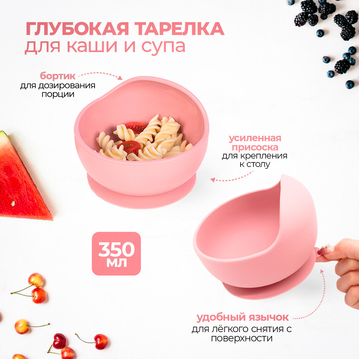 Отзывы на Набор детской посуды силиконовый для кормления малыша на присосках, 9 предметов, розовый, для девочки