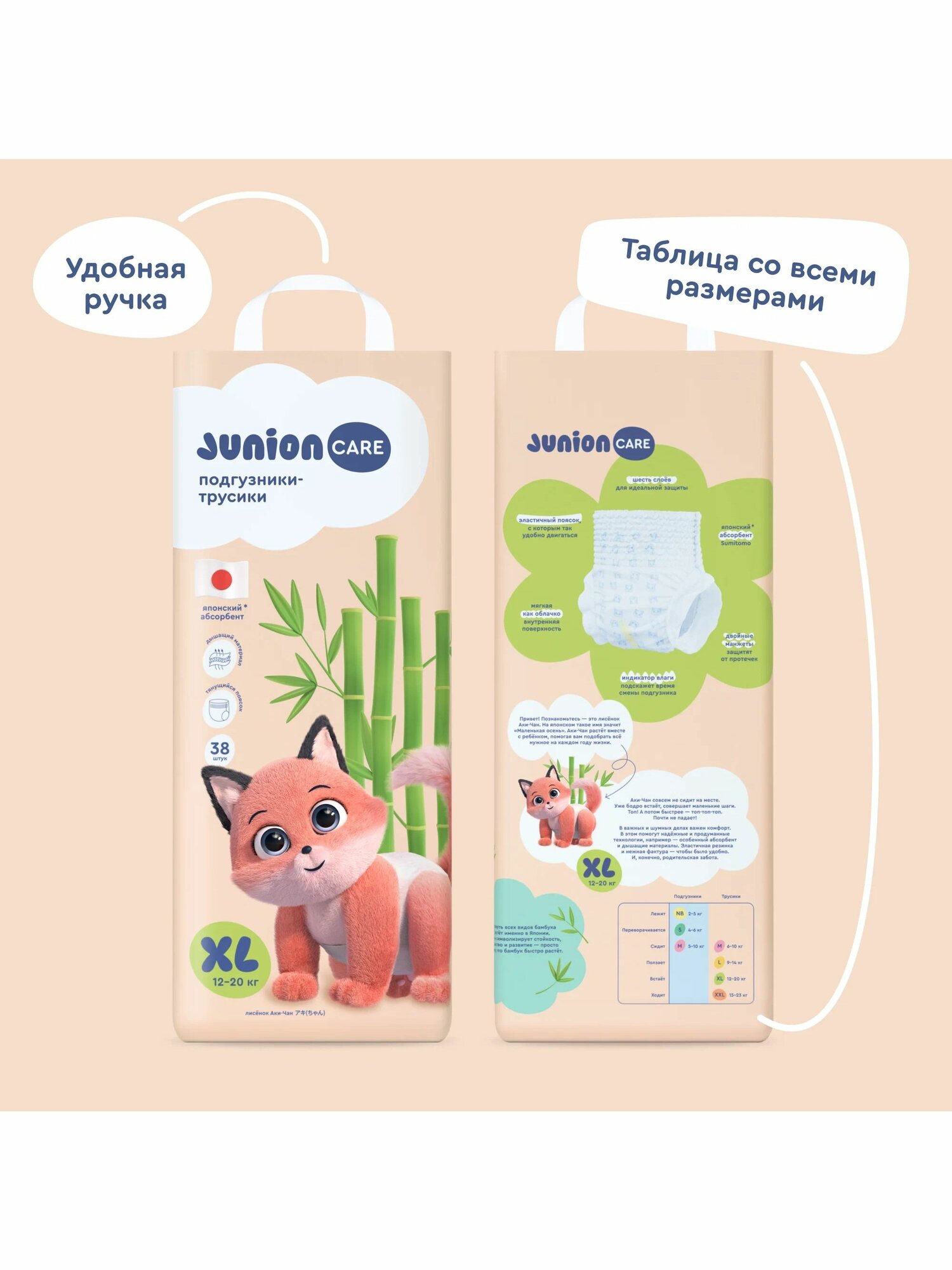 Подгузники трусики детские Junion Care, размер XL, 12-20 кг, 38 штук информация: