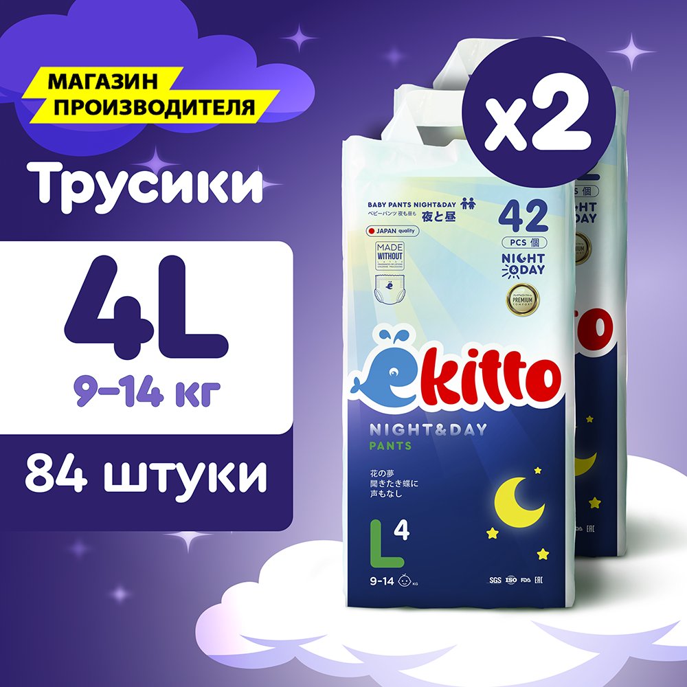Подгузник-трусики Ekitto 4 L для детей весом от 9 до 14кг, 84 шт информация: