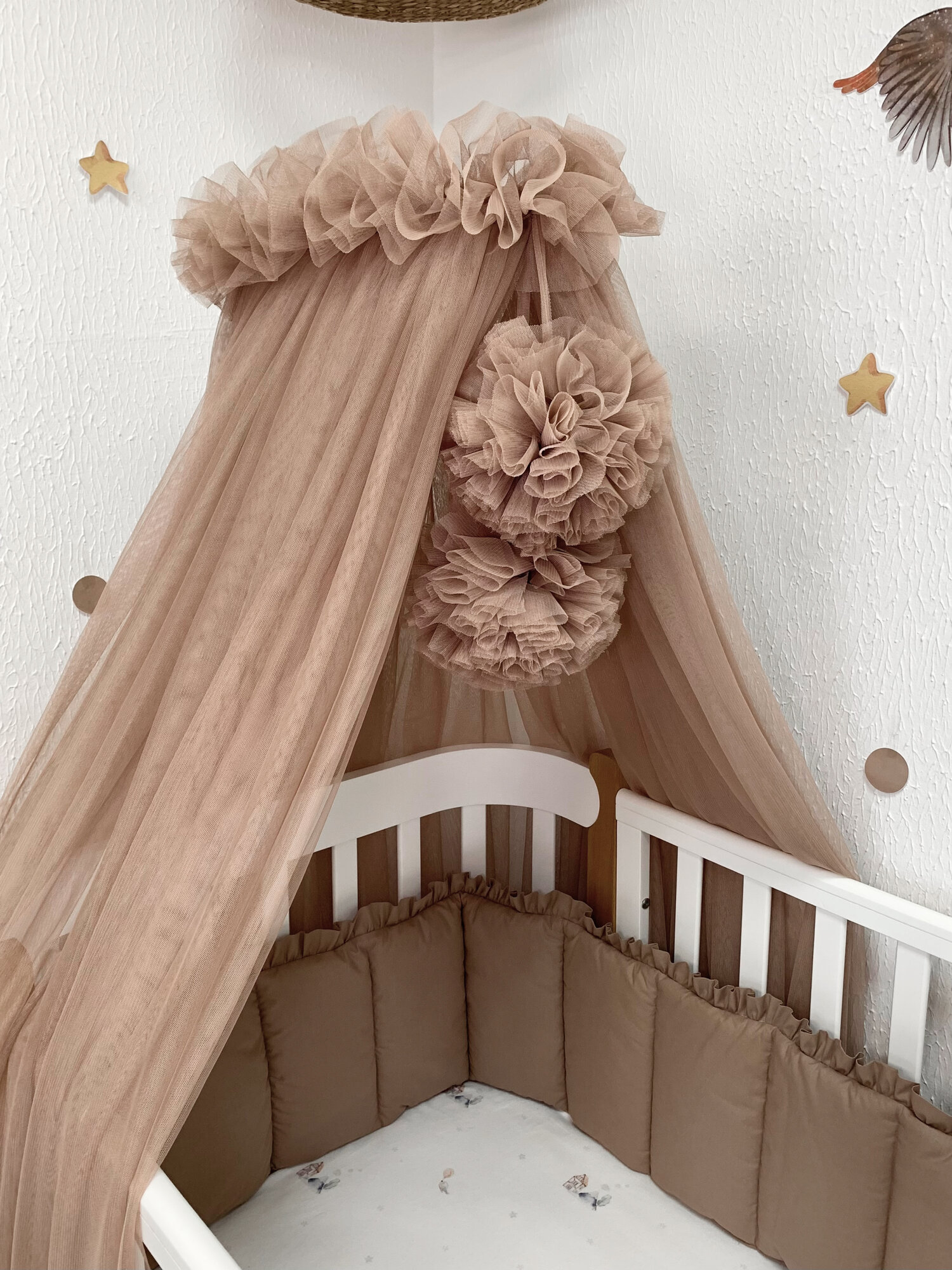 Балдахин на детскую кроватку с помпонами, фатин, капучино 2 990 ₽