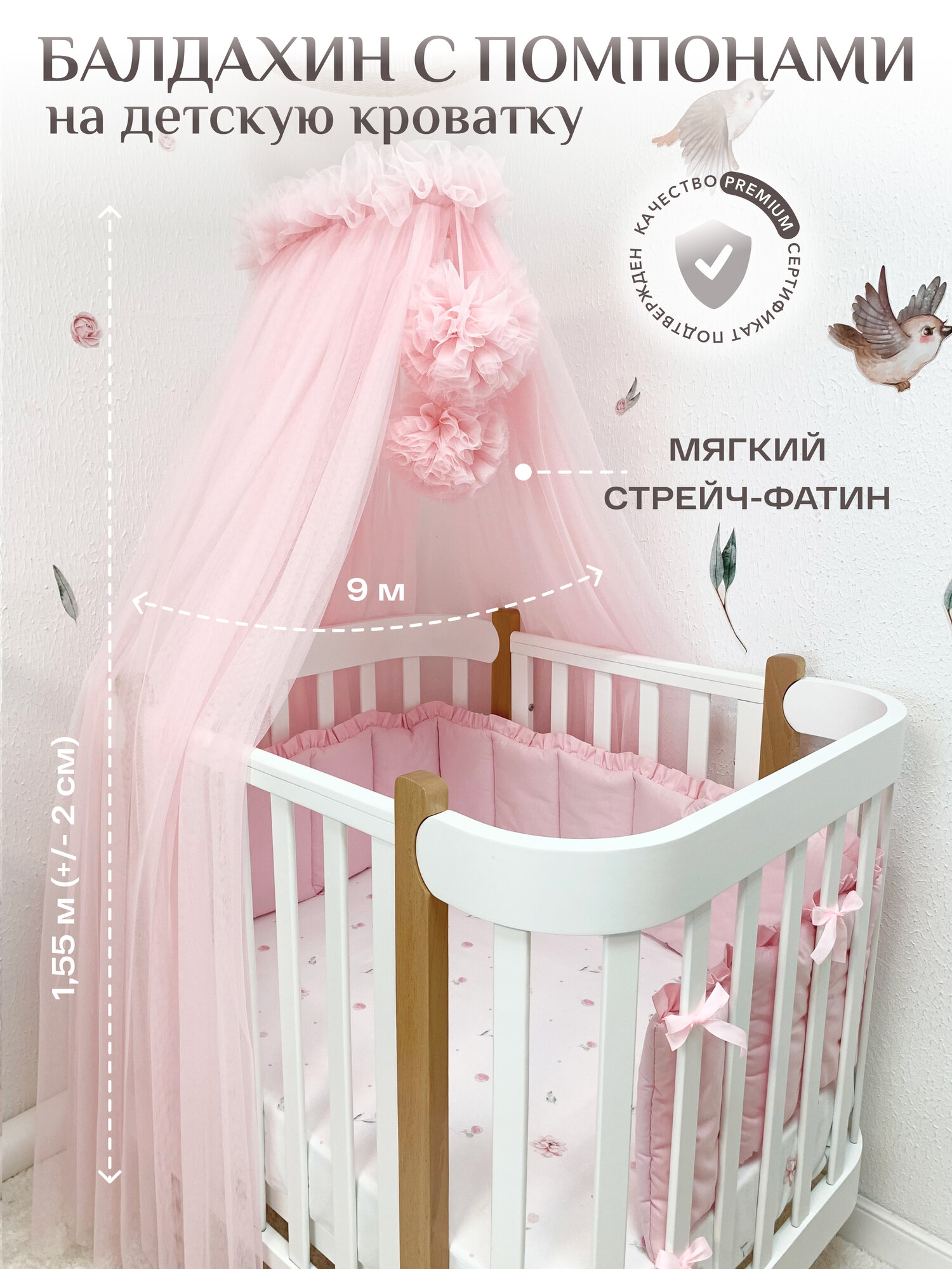 Балдахин на детскую кроватку с помпонами, фатин, розовый 2 990 ₽