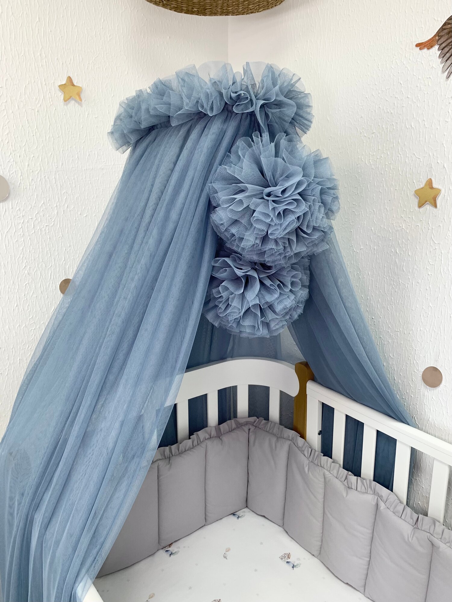 Балдахин на детскую кроватку с помпонами, фатин, индиго 2 990 ₽