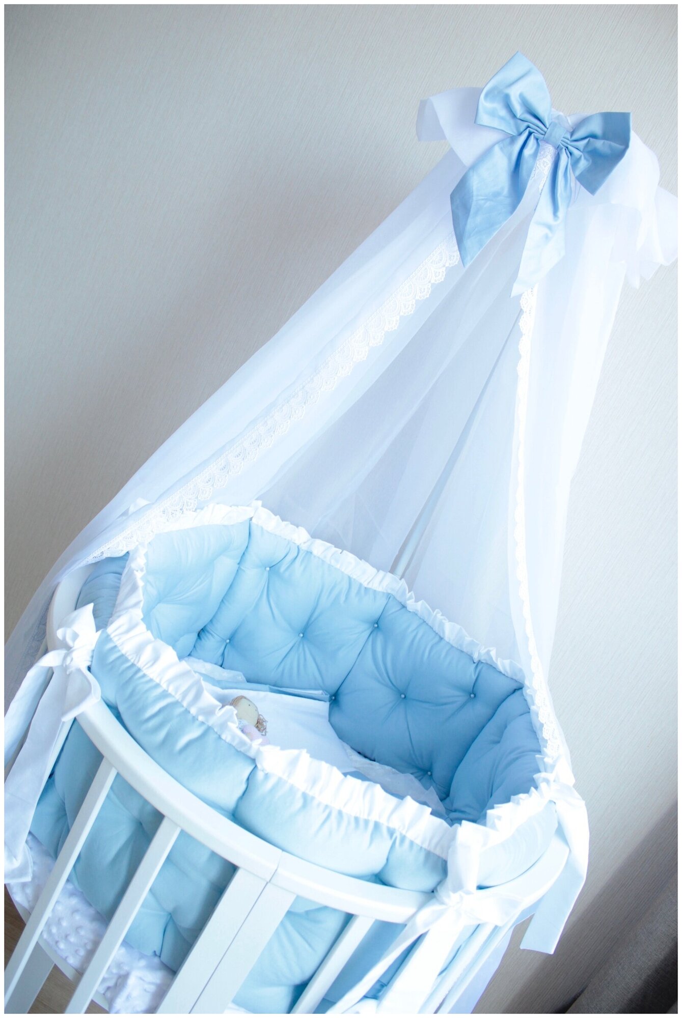 | Особенности | круговой балдахин, кружевной, с бантом |