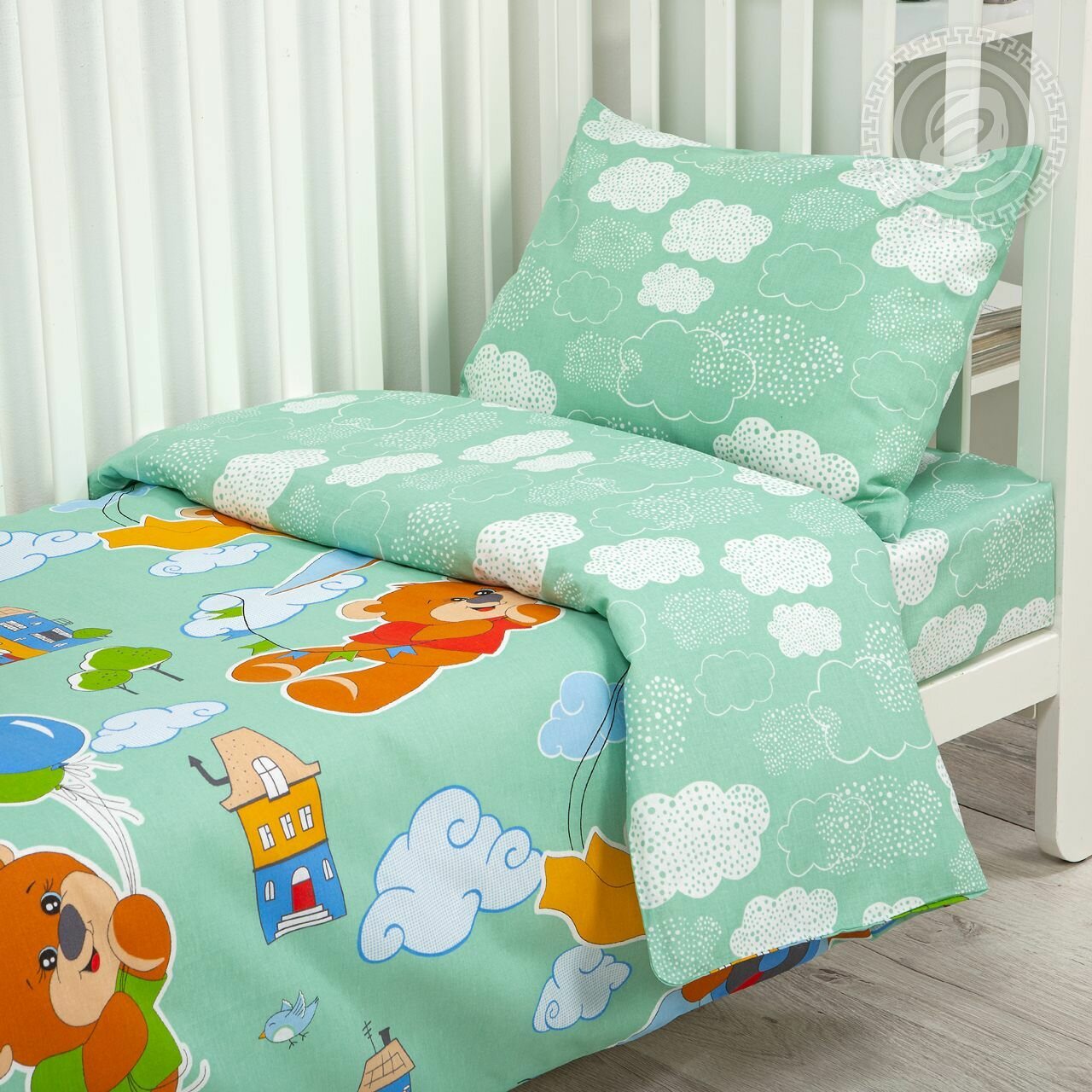 Детский комплект постельного белья из бязи АртПостель "Улетные мишки" Ясельный, в детскую кроватку, зеленый, зверюшки 1 404 ₽