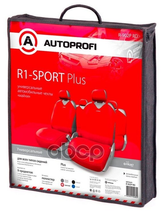 Майки R-1 Sport Plus, Закрытое Сиденье, Полиэстер, 9 Предметов Красный AUTOPROFI арт. R-902P RD