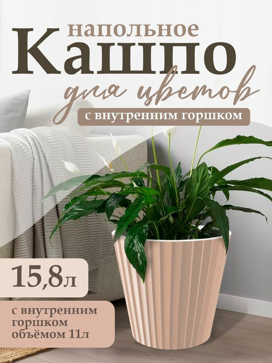 Горшок для цветов с дренажной вставкой InGreen коллекция Sand пластиковый на колесах 15,8 л, (молочный шоколад) 6404 информация: