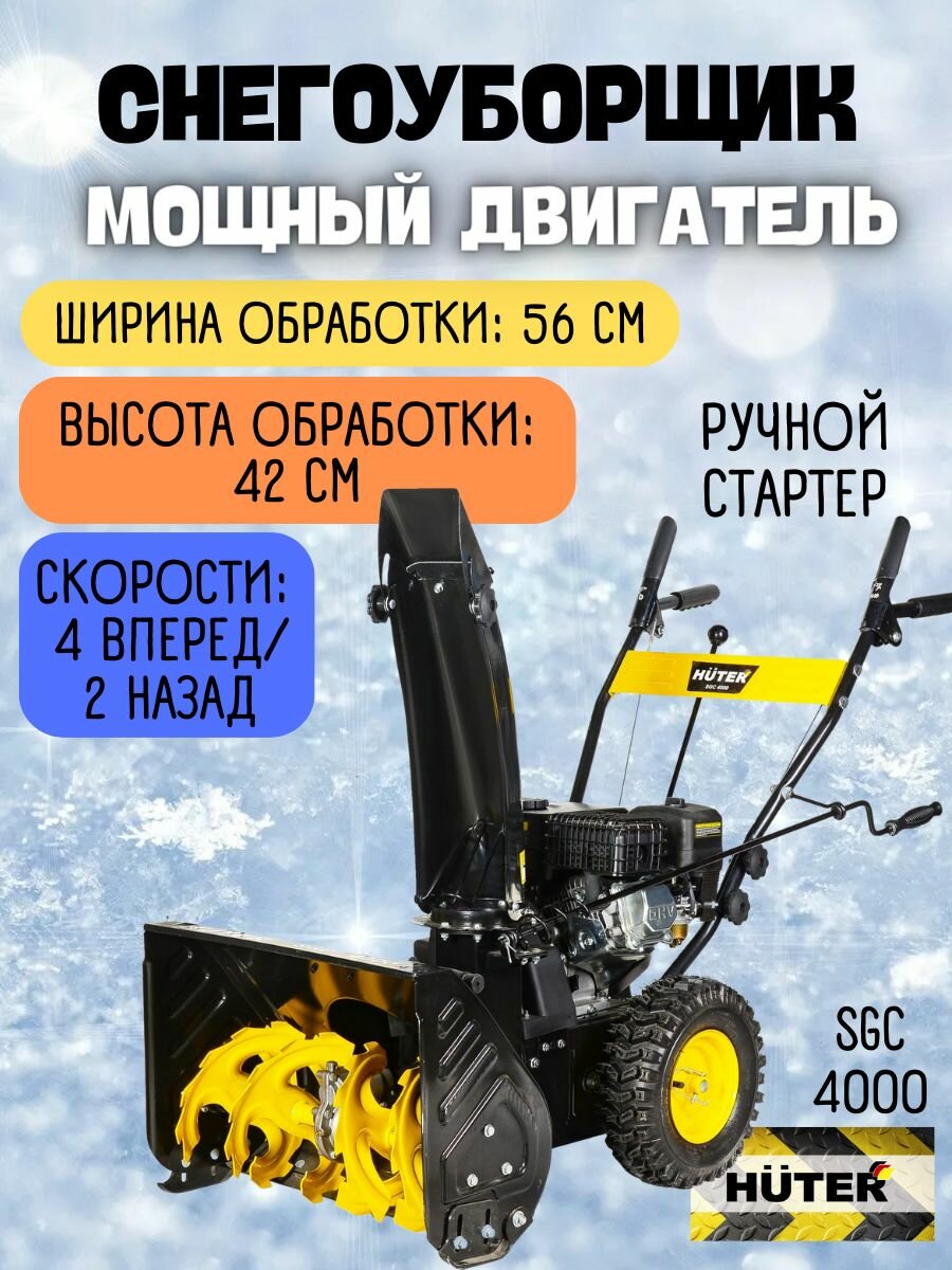 Снегоуборщик бензиновый Huter SGC 7/56 / аналог Huter 4000 (7 л. с, 4-х тактный, скорости 4 вперед/2 назад) Снегоочиститель информация:
