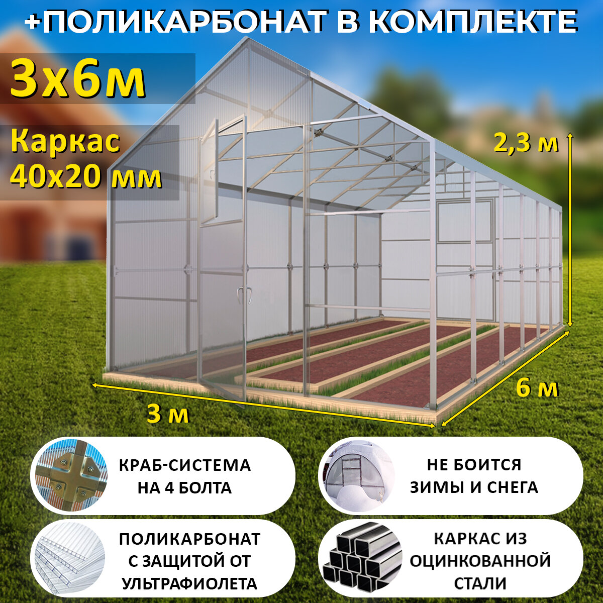 10 цен на Теплица Двускатная (Поликарбонат в комплекте) 3 х 6 метров, оцинкованный каркас 40х20 мм - Дворцовая Люкс