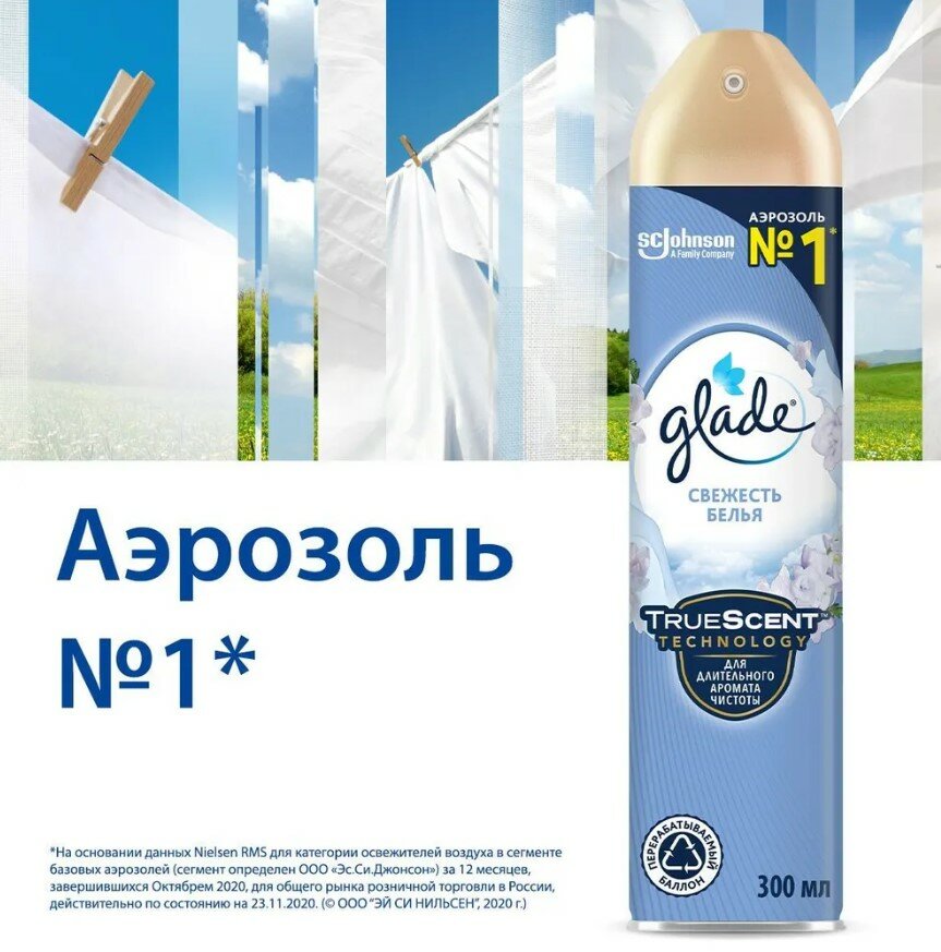 Освежитель воздуха аэрозольный Glade "Свежесть белья", 300мл 268 ₽