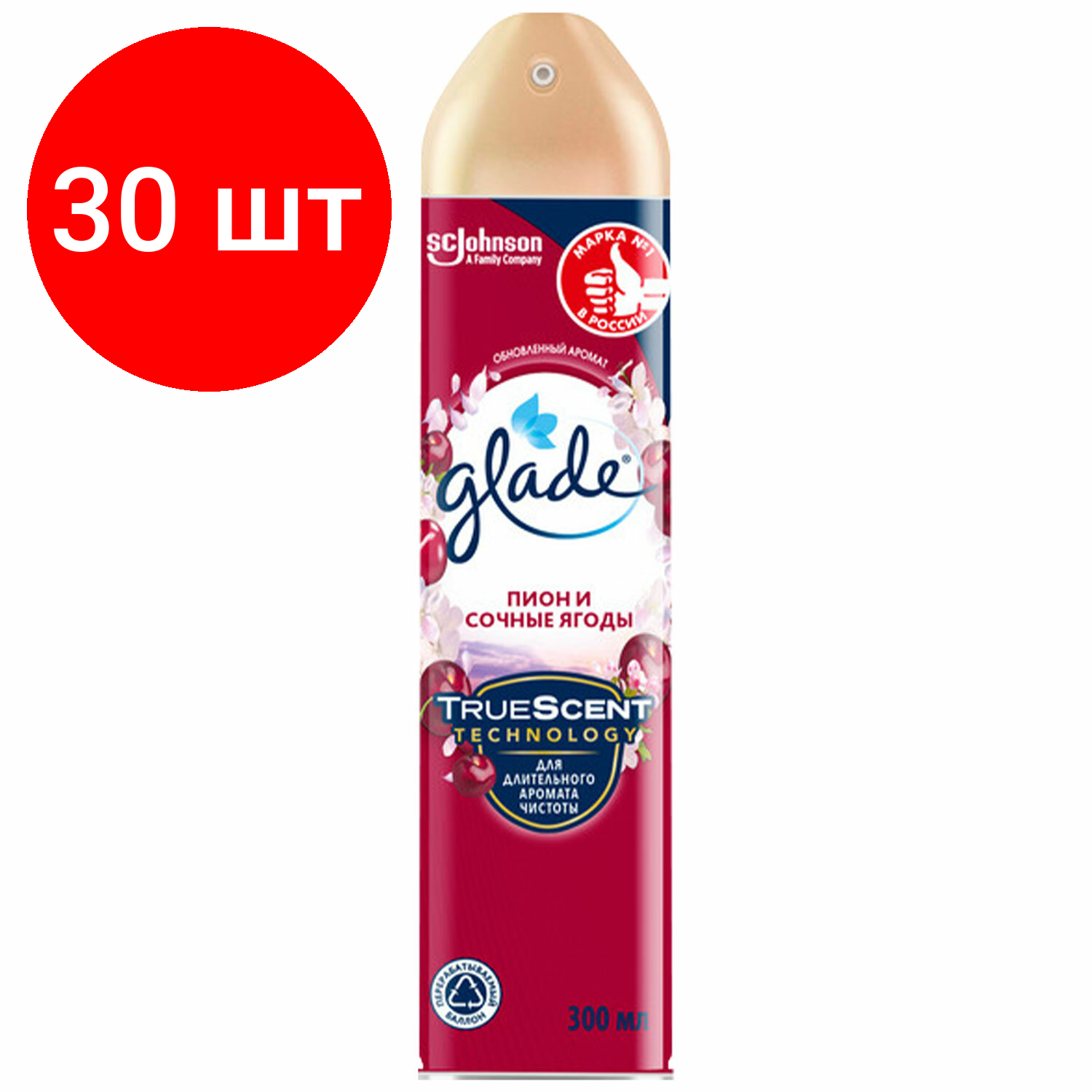 10 цен на Комплект 30 шт, Освежитель воздуха аэрозольный 300 мл GLADE (Глейд) "Пион и сочные ягоды", 692365