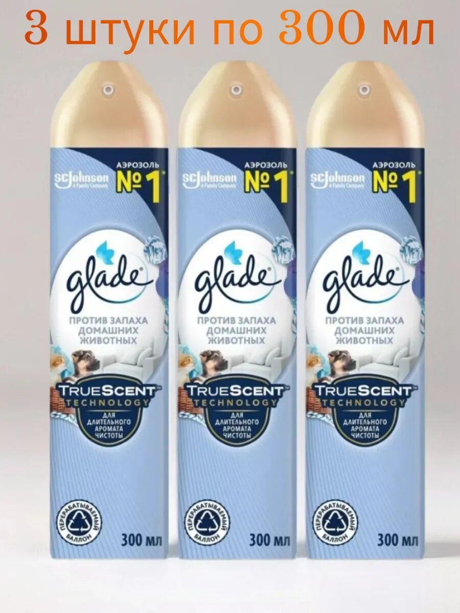 Glade Освежитель воздуха Против запаха домашних животных, 300 мл - 3 шт 806 ₽