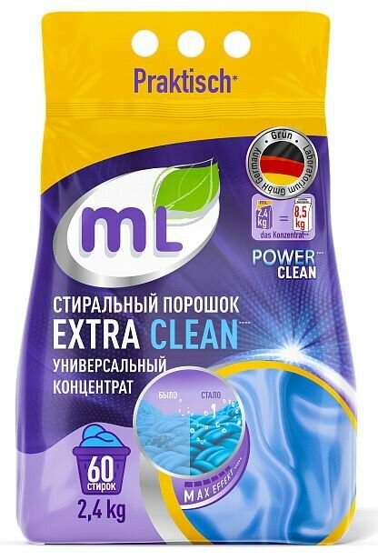 Стиральный порошок для цветного mL EXTRA COLOR, универсальный концентрат, формула защиты цвета, 2.4 кг