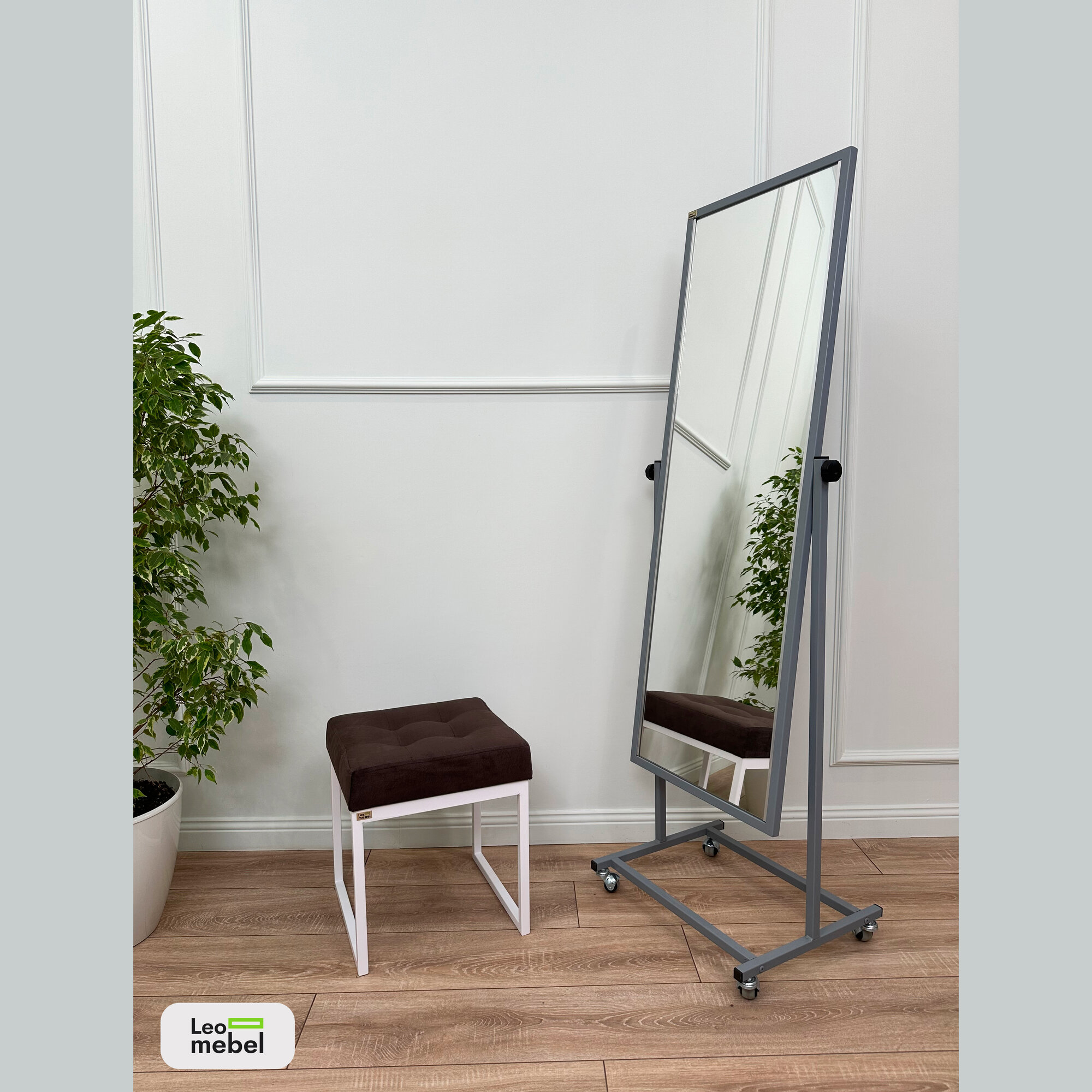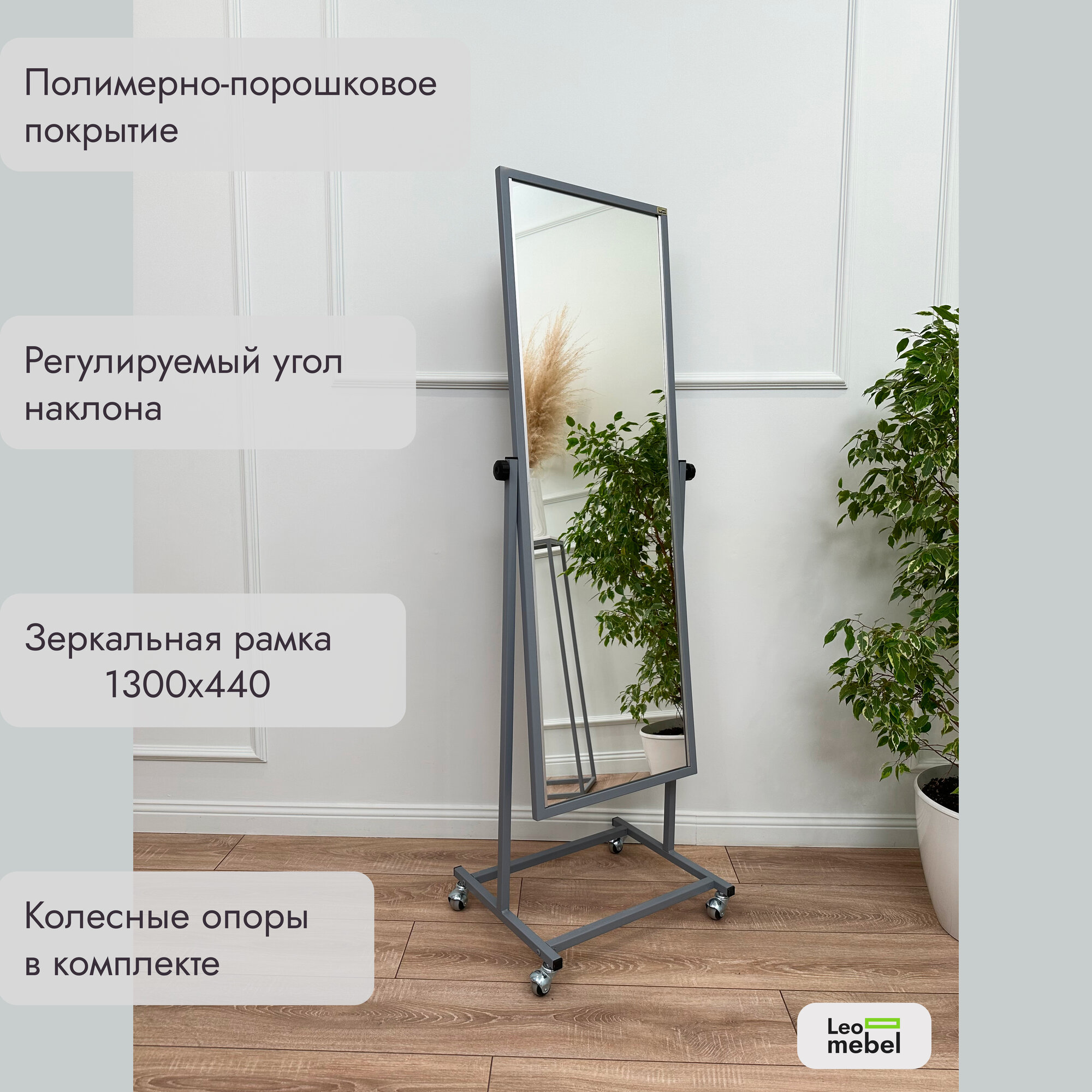 Зеркало напольное в полный рост Леомебель на колёсиках 160х49 Серый информация: