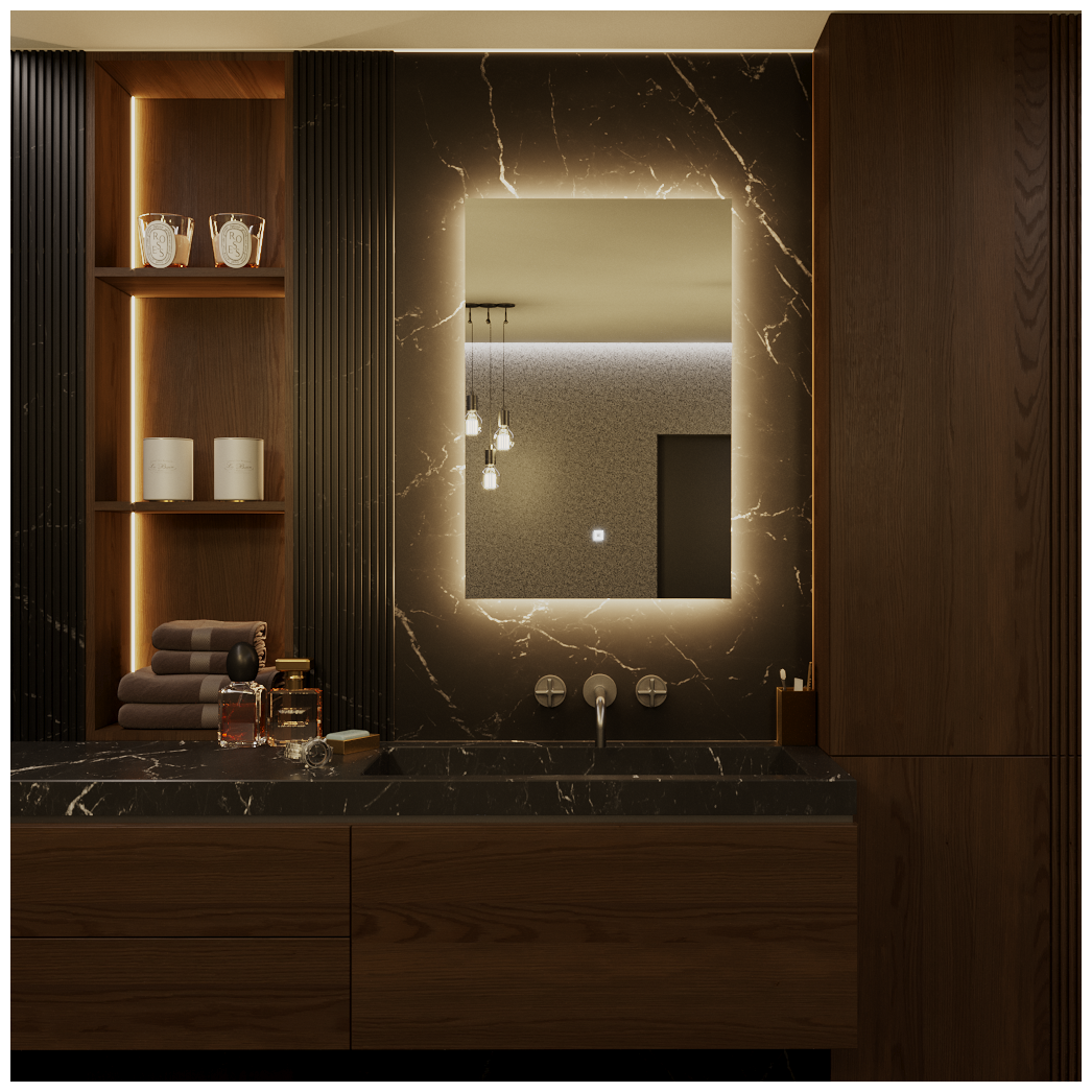 Зеркало в ванную с подсветкой настенное Alias Квартал 60*80 для ванной с тёплой LED-подсветкой, сенсорная кнопка