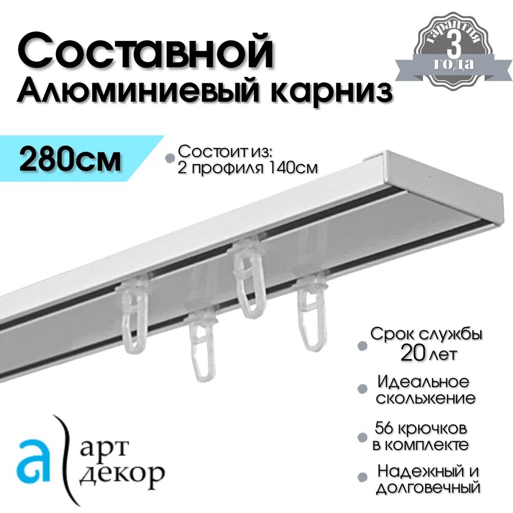 Карниз для штор двухрядный составной потолочный, настенный алюминиевый белый 280 см/ Металлический шинный для натяжных потолков